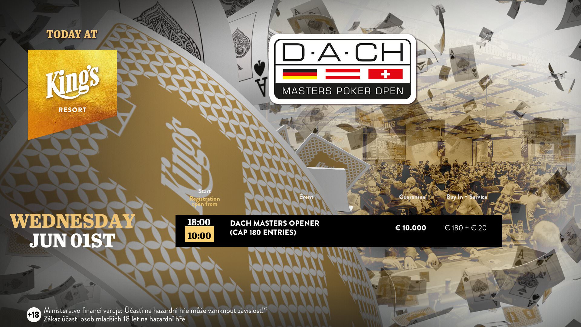 Heute beginnt im King’s das DACH Masters Poker Open mit dem €180+20 Opener Event und €10.000 garantiert. Für das Turnier sind maximal 117 Entries zugelassen.