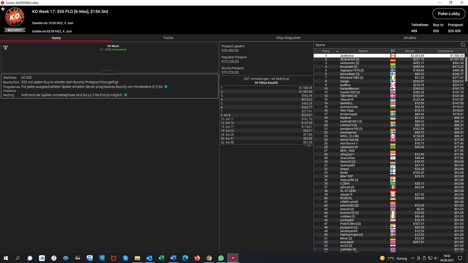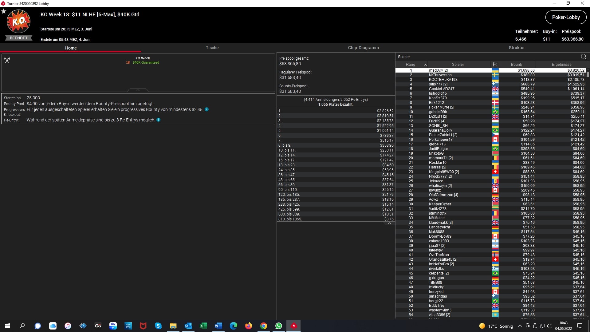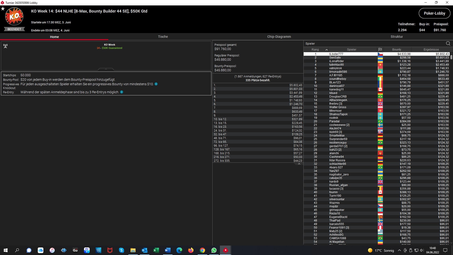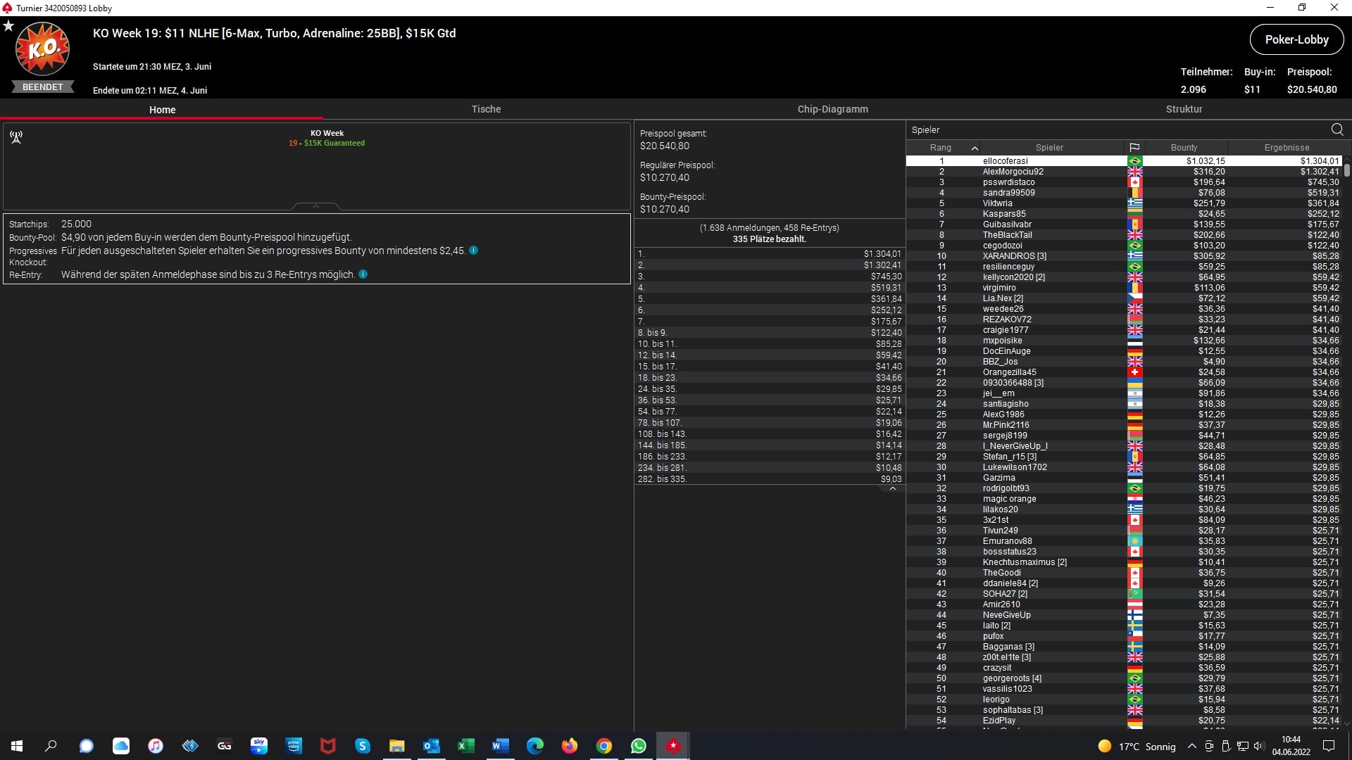 Platz 2 – $22 NLHE 7-Max – „jaken20“ (GER) – „5.440 + $1.632 Bounties