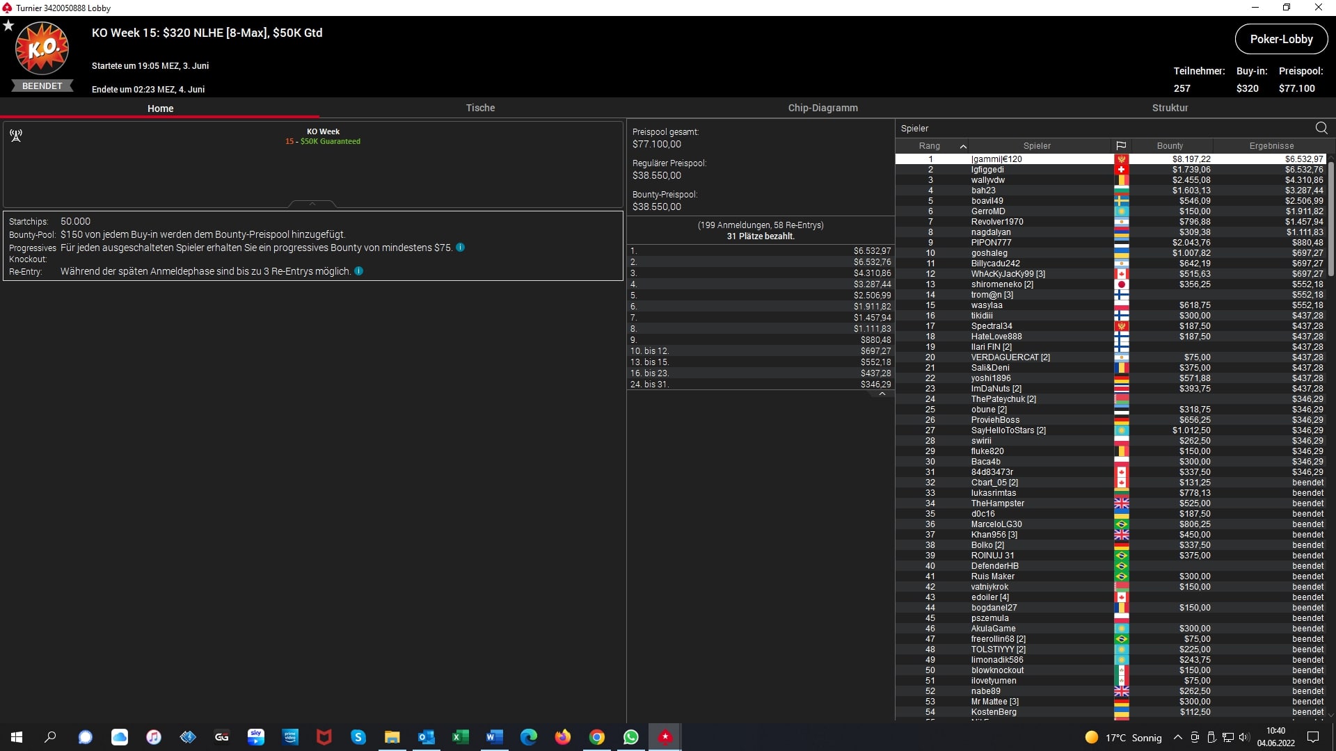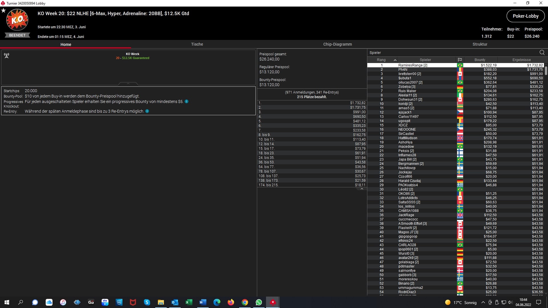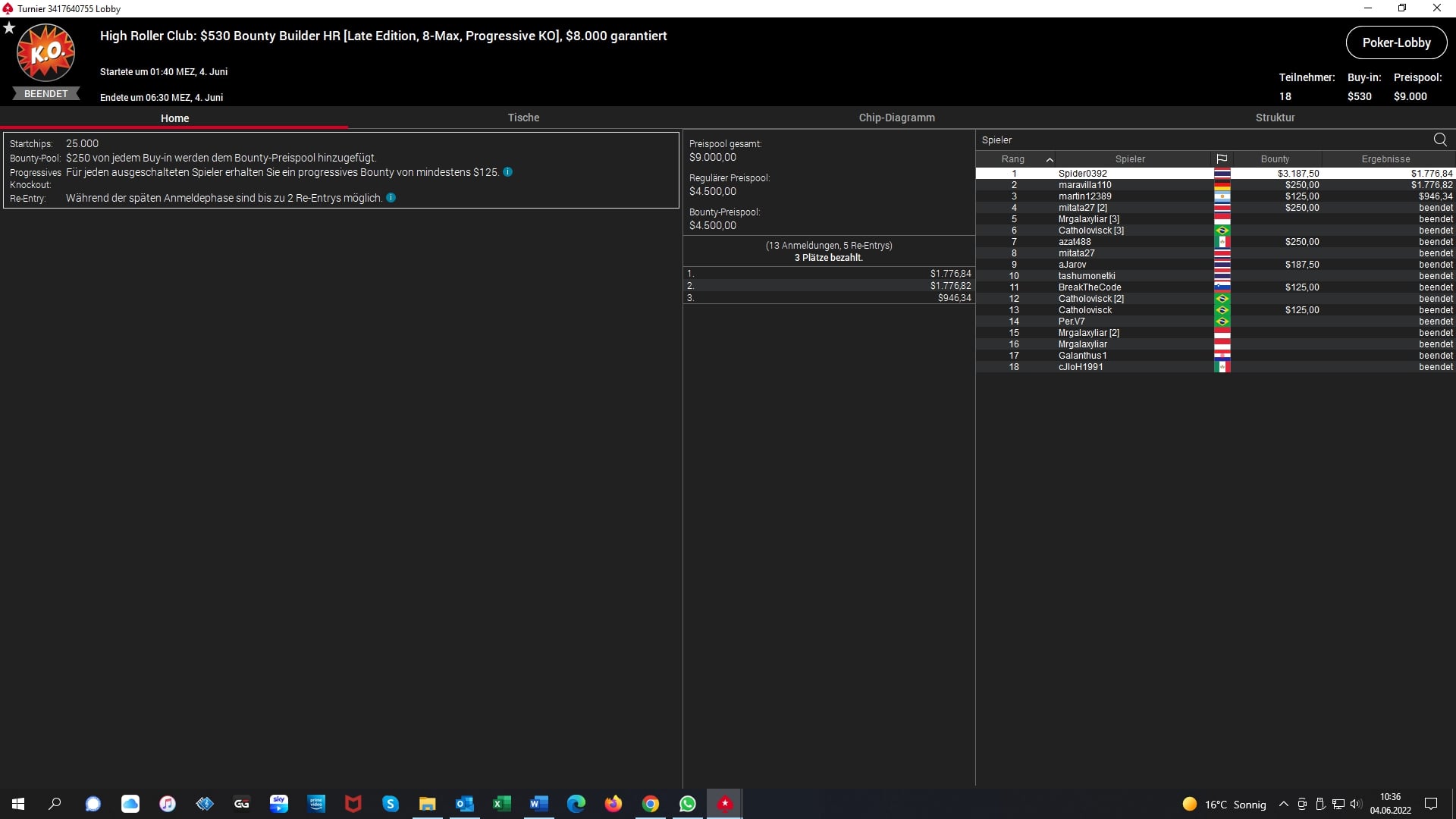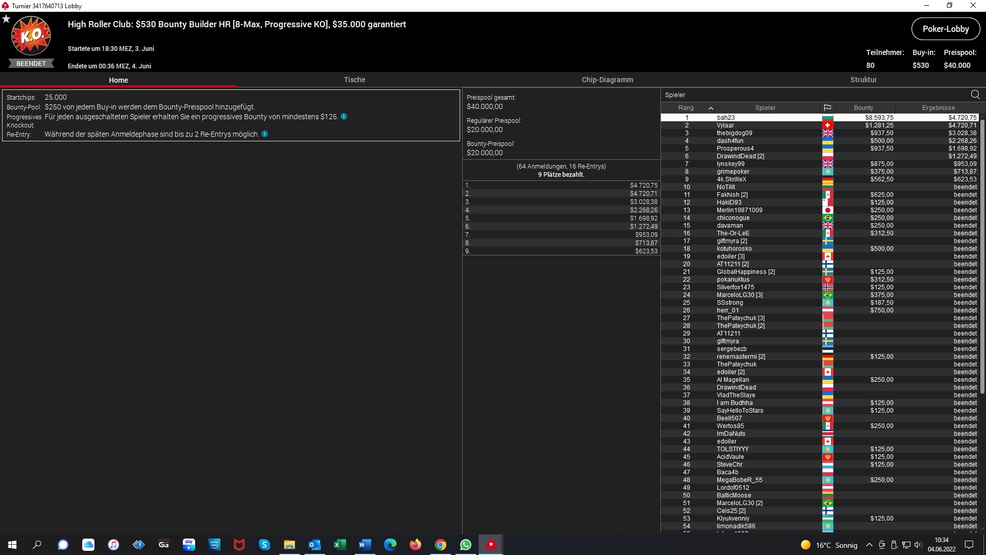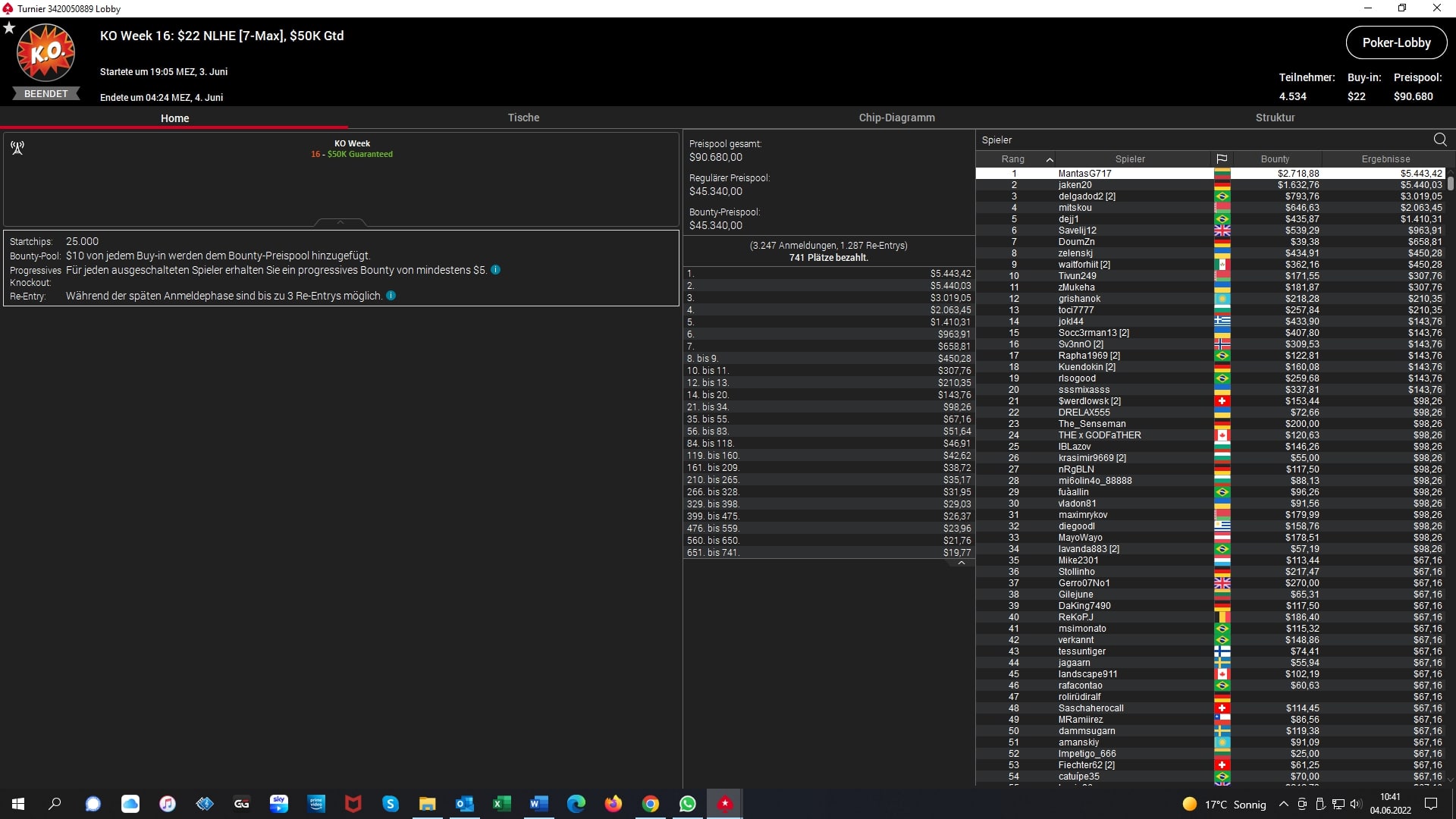 Platz 2 – $22 NLHE 7-Max – „jaken20“ (GER) – „5.440 + $1.632 Bounties