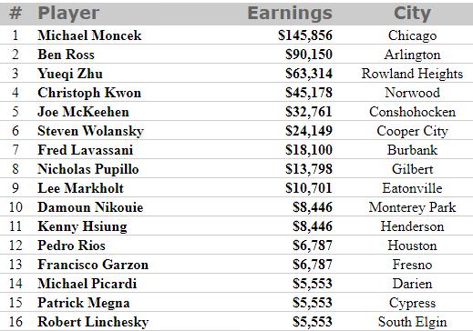 Aber das Blatt wendete sich und rund zwei Stunden später gewann Moncek die letzte Hand mit einem Flush gegen Twopair und bejubelte das Bracelet plus $145.856 Prämie. Ben Ross kassierte als Zweiter $90.150.