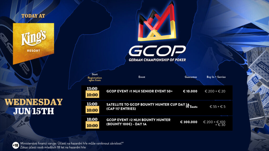 Und um 18:00 Uhr geht es dann in den Tag 1a des GCOP Bounty Hunter Cups mit €300.000 Preispool-Garantie und €200+100+30 Buy-In.
