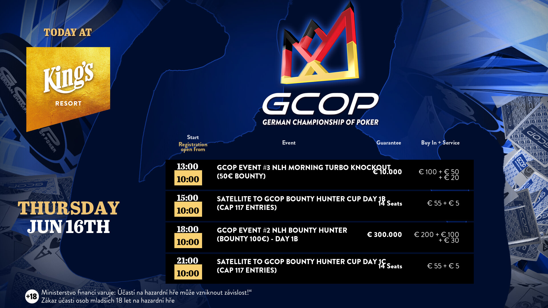 Erwartungsgemäß waren die Zahlen zum Auftakt der German Championship of Poker (GCOP) im King’s Resort Rozvadov am Mittwoch noch übersichtlich, was sich spätestens am Freitag aber ändern wird.
