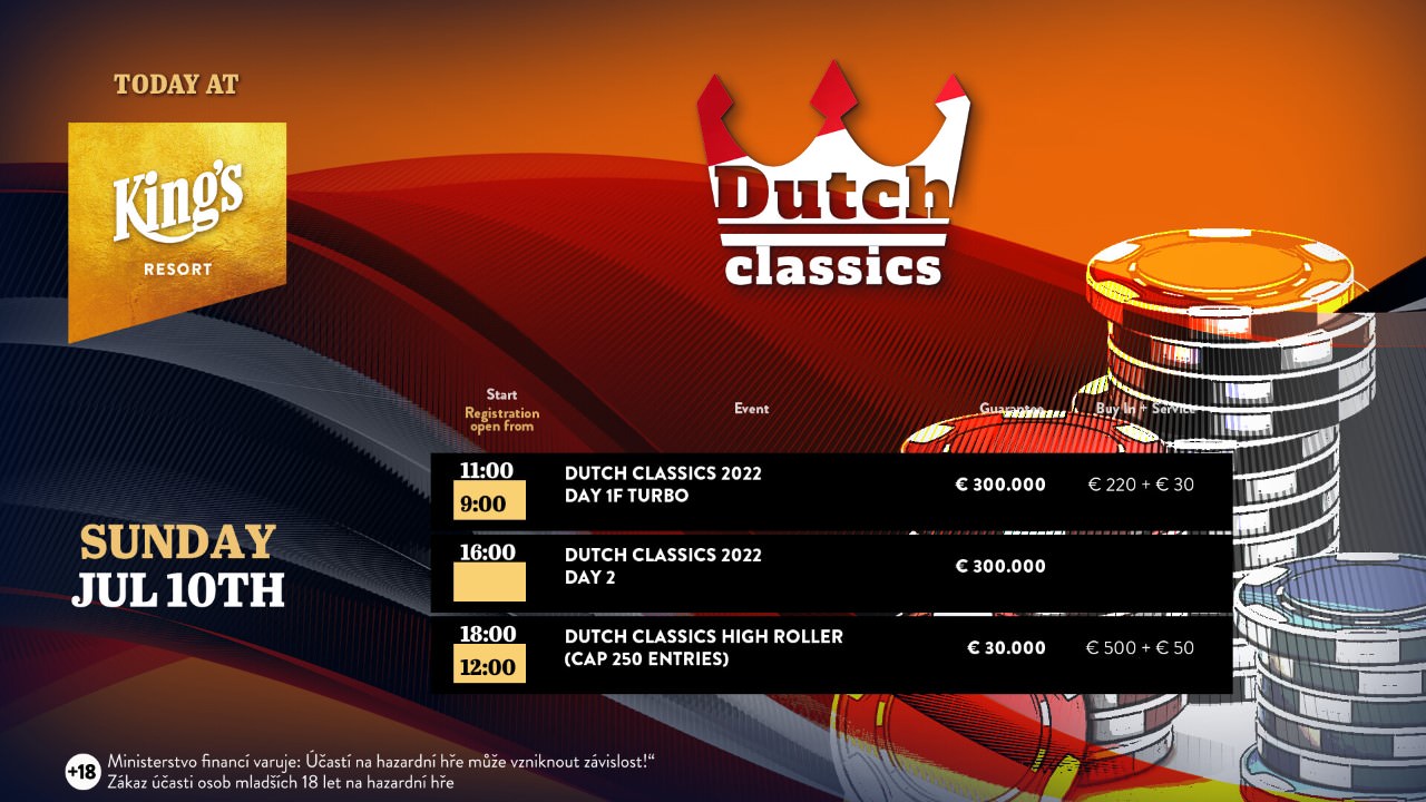 Beim €220+€30 Main Event der Dutch Classics powered by Pokerreis im King’s Resort Rozvadov standen gestern die Starttage 1D und 1E an.