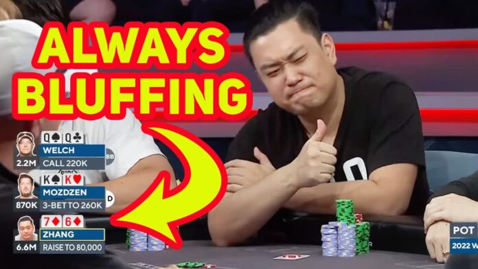 Der Amerikaner ließ einige irrwitzige Spielzüge vom Stapel und ließ sich auch nicht von 3-Bets oder 4-Bets beeindrucken.