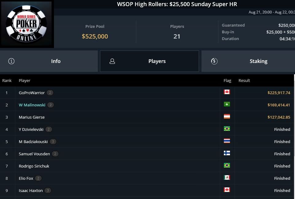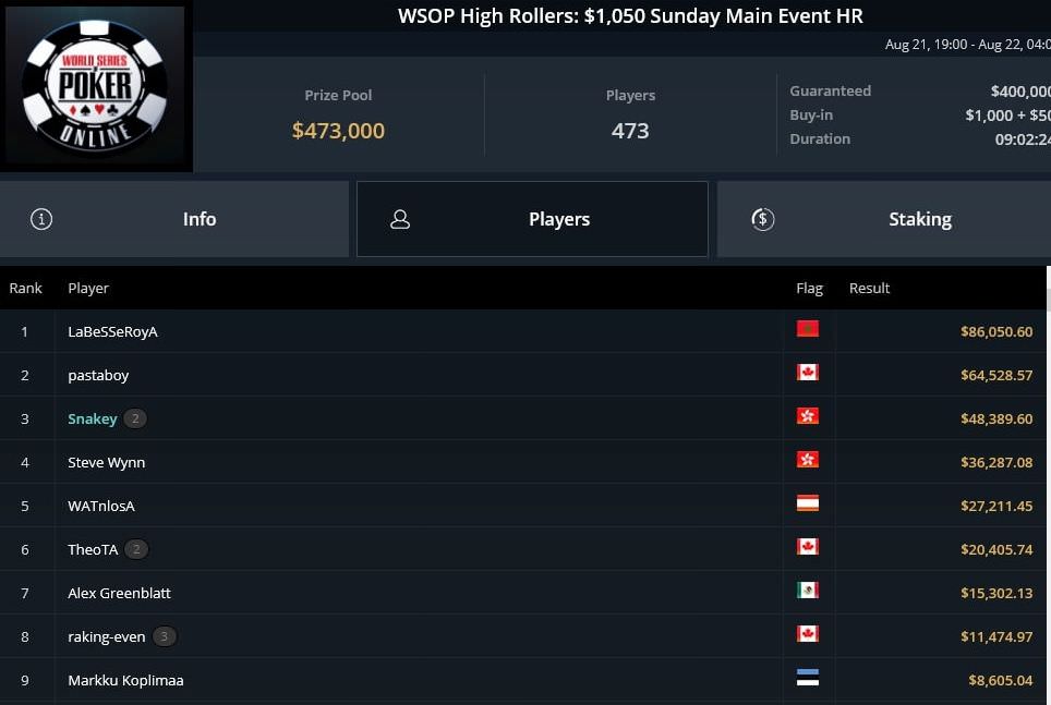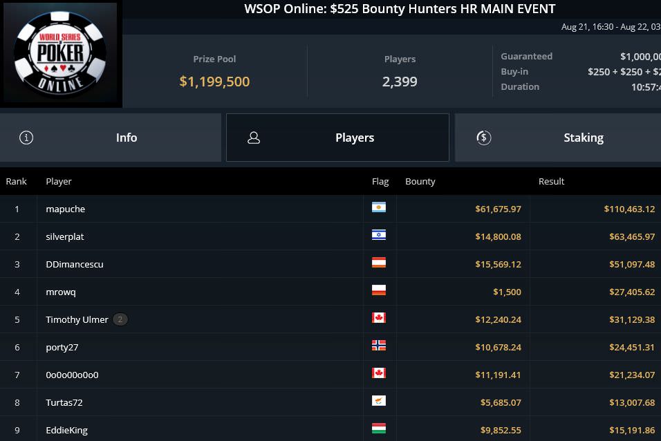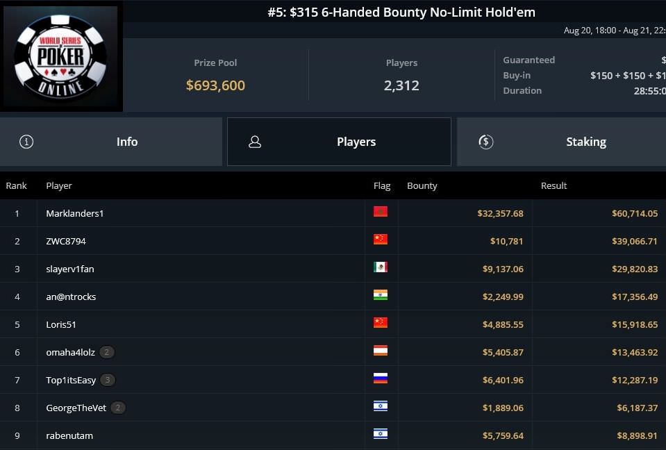 32 Spieler durften sich bei WSOP Online Event #5, dem $315 6-Handed Bounty No-Limit Hold’em noch Hoffnungen auf den Sieg machen.