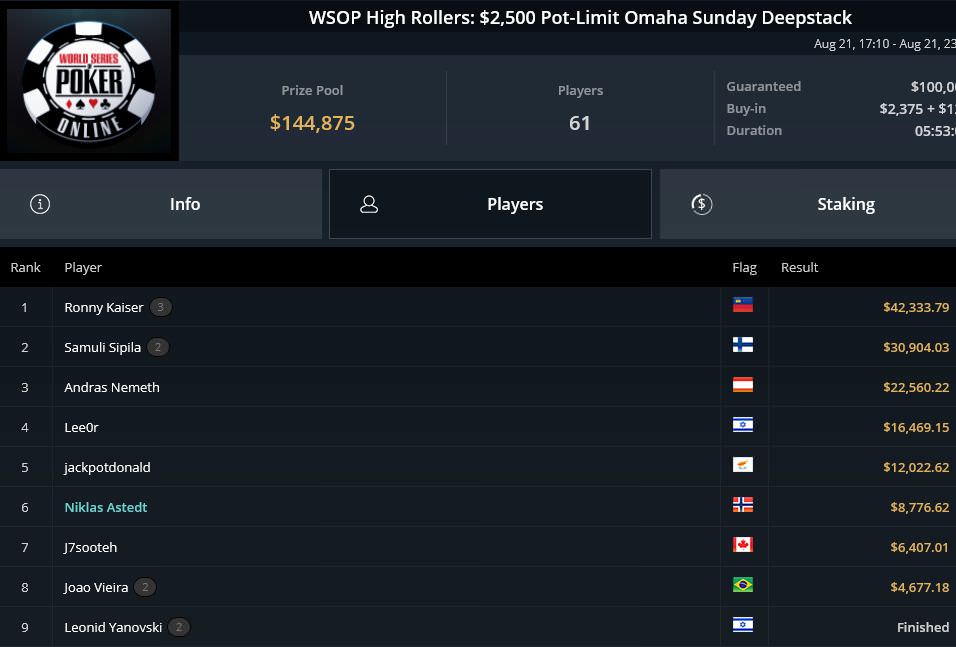 Ronny Kaiser zeigte mal wieder seine PLO-Fähigkeiten. Er triumphierte beim $2,5k PLO Sunday Deepstack und nahm über $42.000 mit.