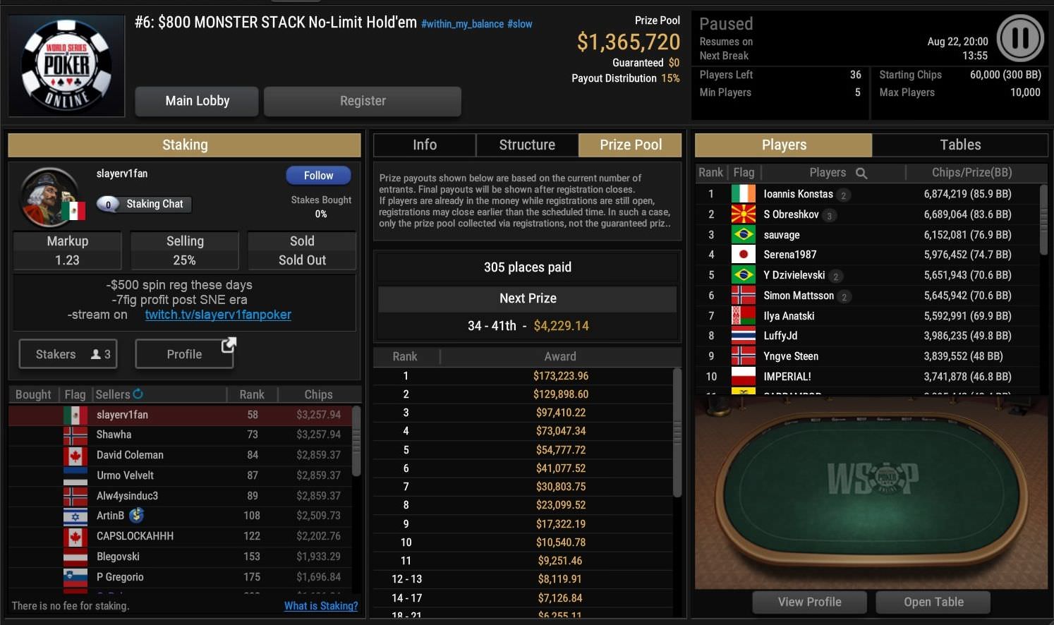 Gestartet wurde mit dem $800 Monster Stack (Event #6) das nächste Bracelet-Turnier.