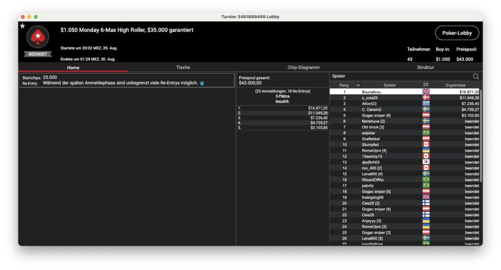 Fünf Turniere gab es am Montagabend bei den PokerStars High Rollern – und die Entscheidung bei der Sunday Million und Mini Sunday Million ist gefallen. Dominik Nitsche konnte gleich zwei Turniere für sich entscheiden.