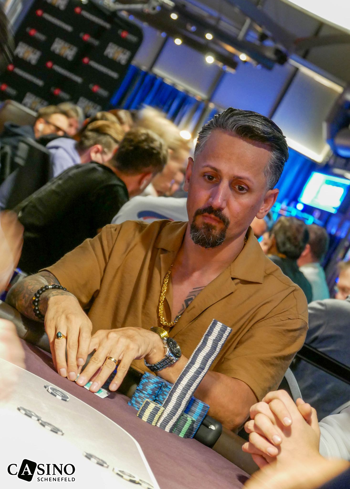 Den Cut geschafft hat auch PokerStars Ambassador und Twitch-Streamer Felix Schneiders, der mit 98.000 Chips aber im hinteren Drittel zu finden ist.