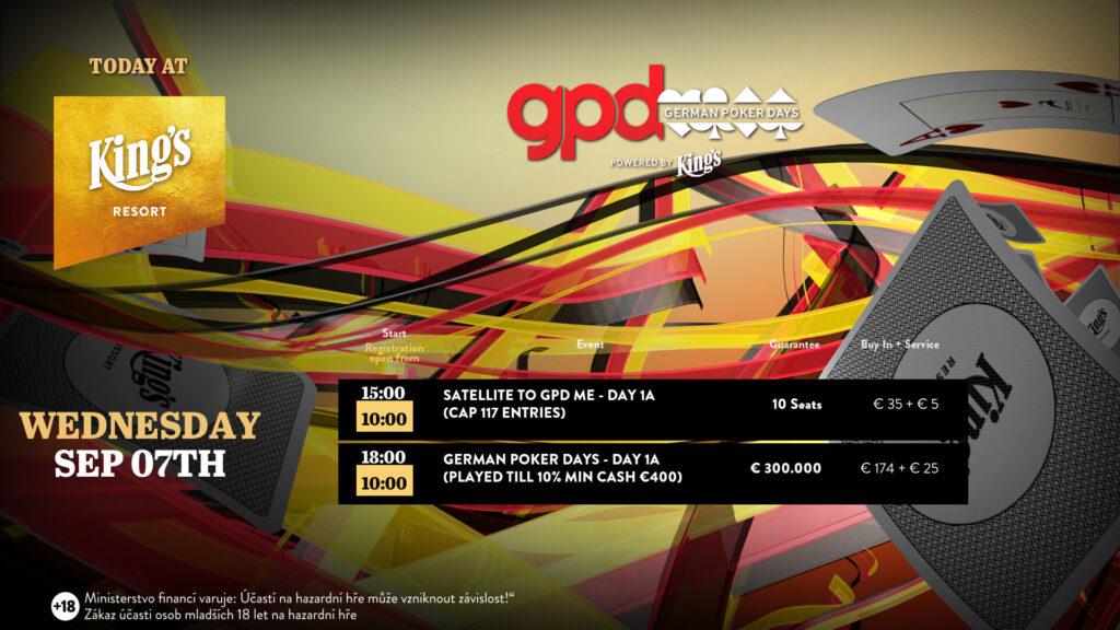 Um 15:00 Uhr gibt es die Möglichkeit bei einem Satellite sich einen von zehn garantierten Tickets für die German Poker Days zum Vorteilspreis von €35+5 zu sichern.