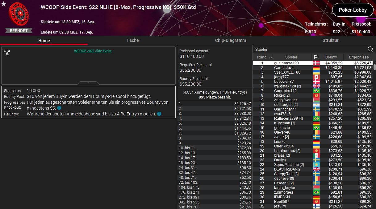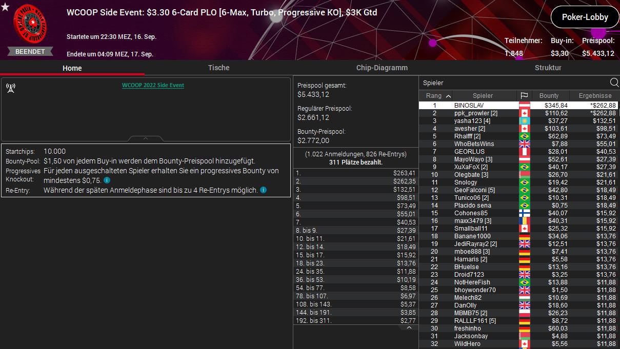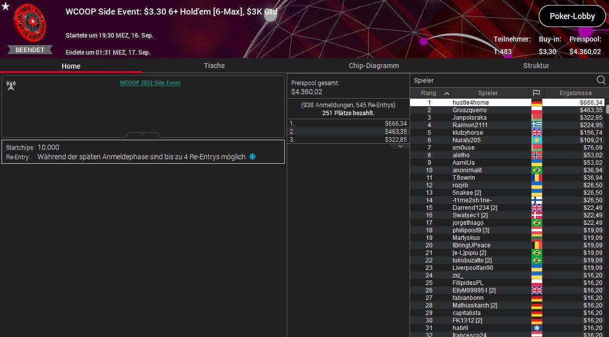 Und hier der komplette Spielplan zur WCOOP 2022: