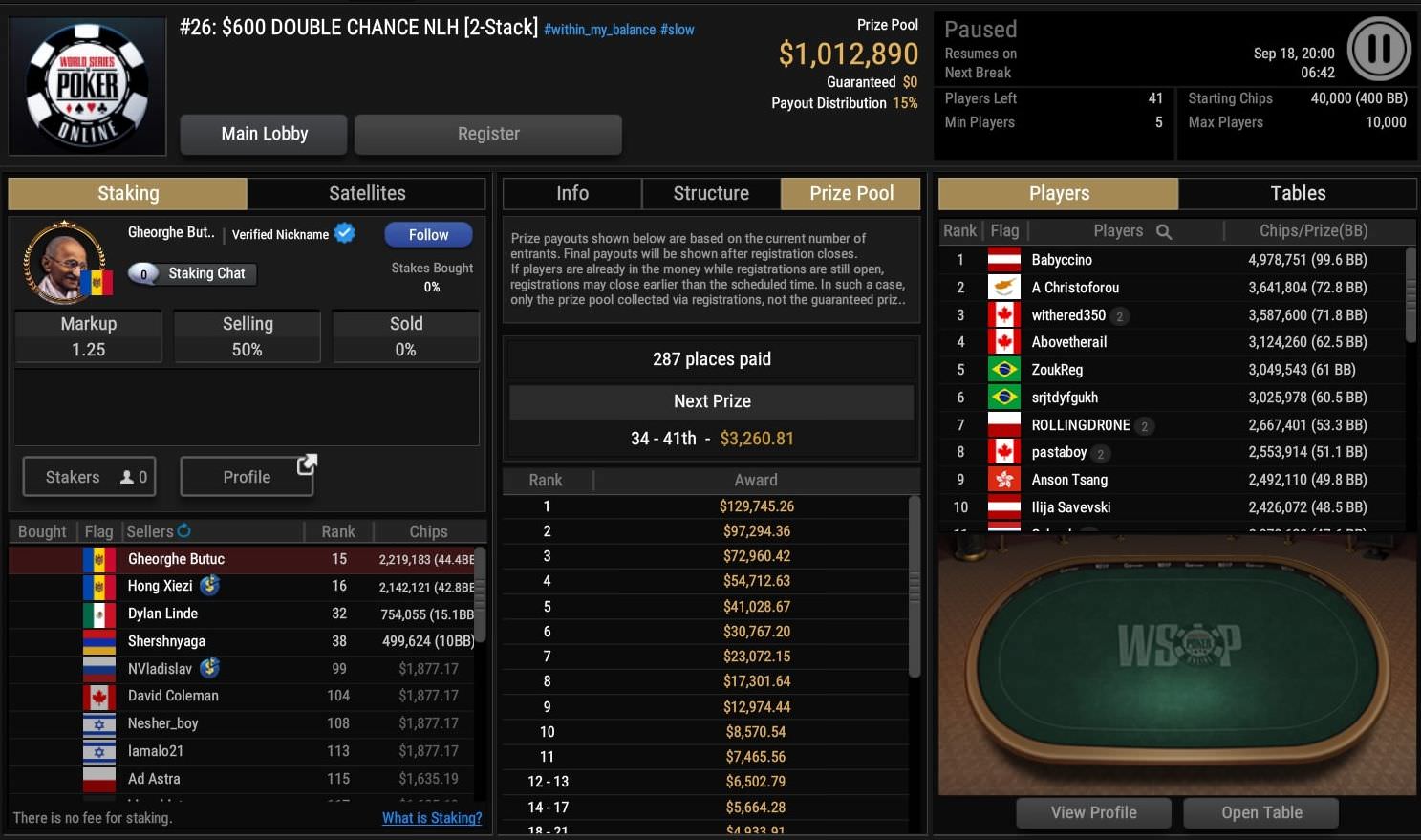Beim $600 Double Chance kauften sich 1.777 Entrys ein, damit gibt es über $1 Million zu gewinnen.