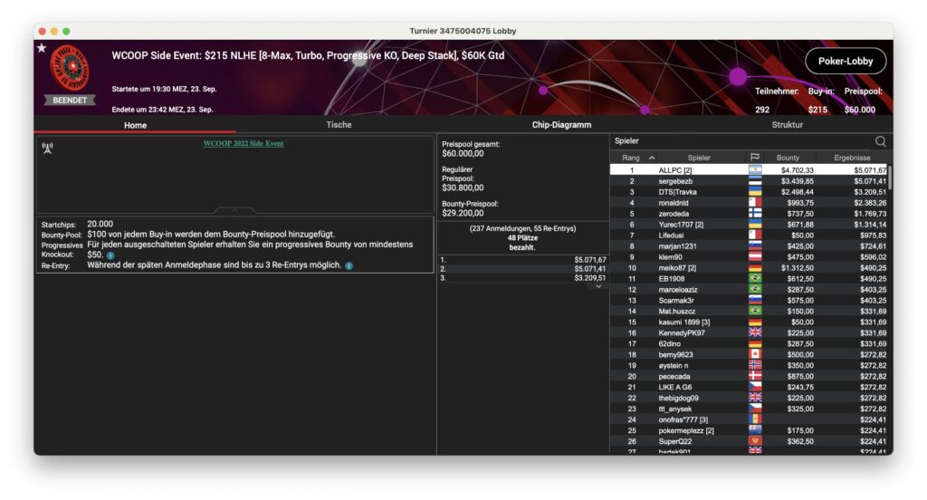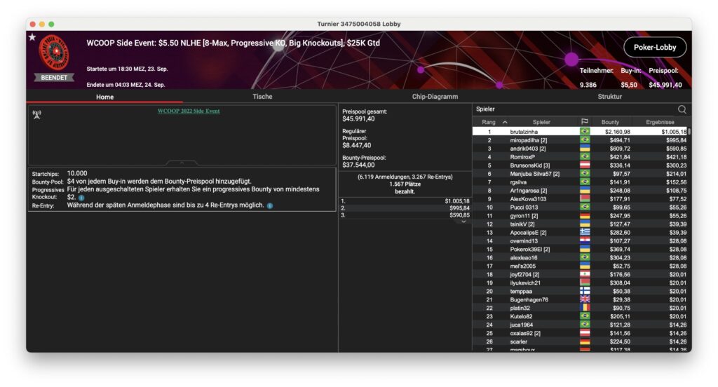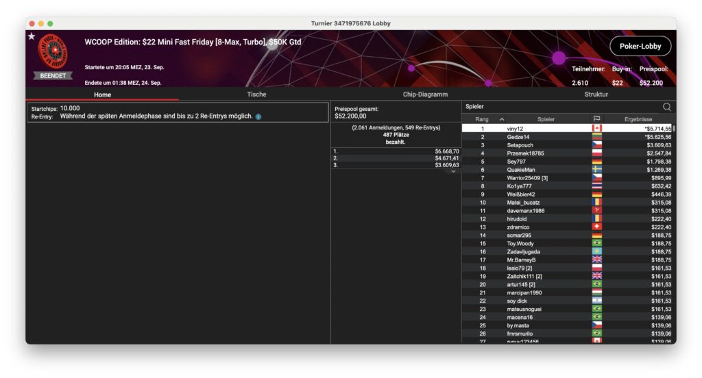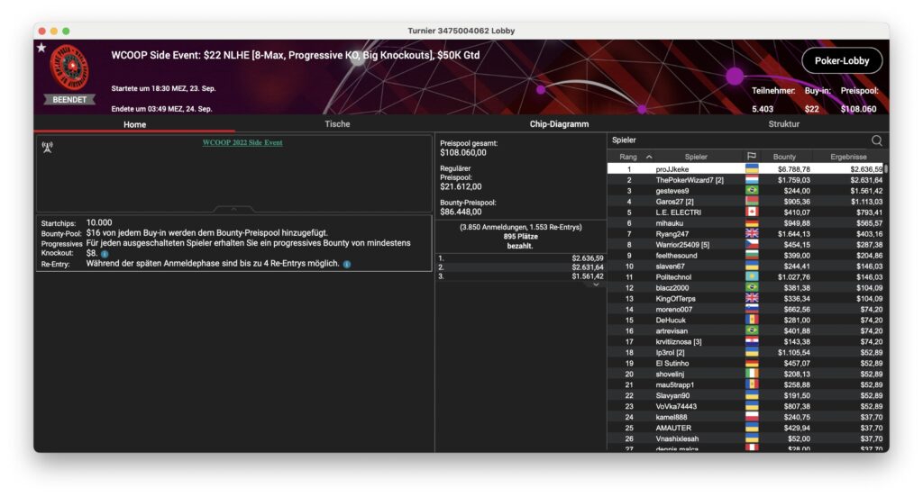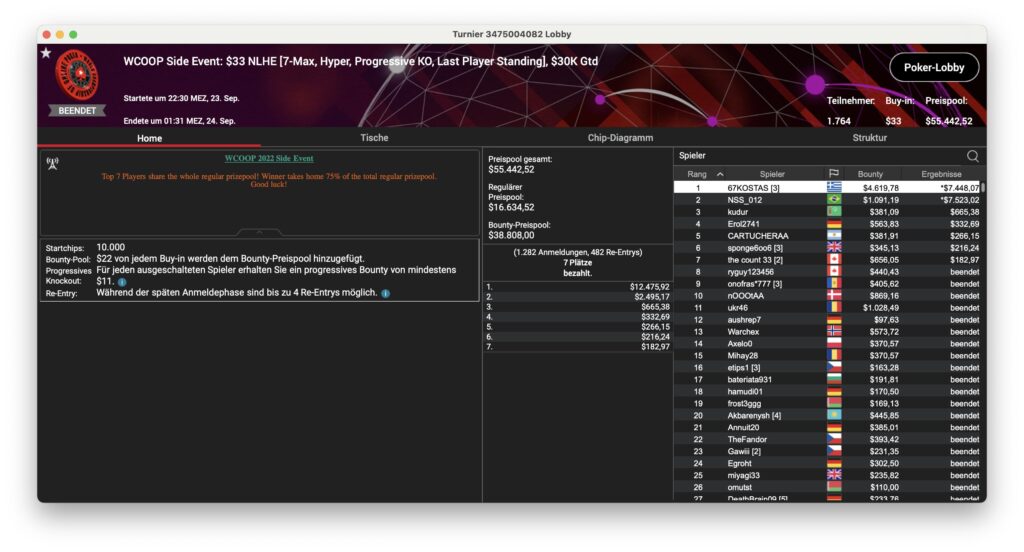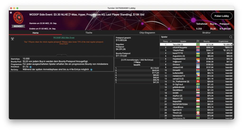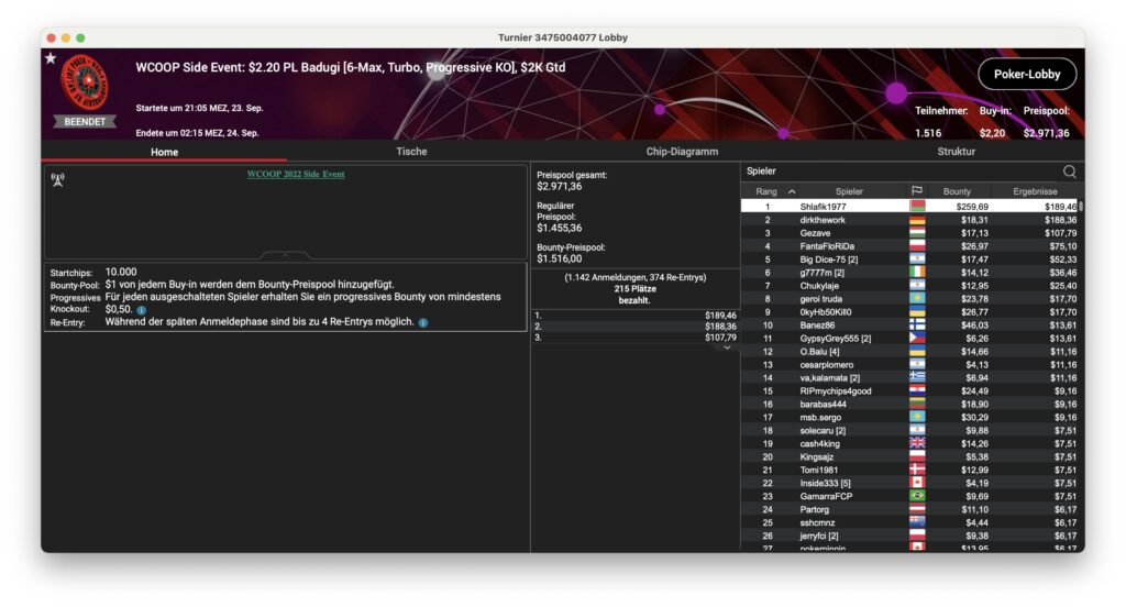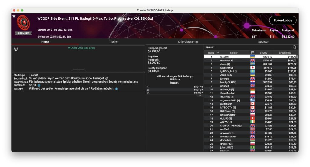 Und hier der komplette Spielplan zur WCOOP 2022: