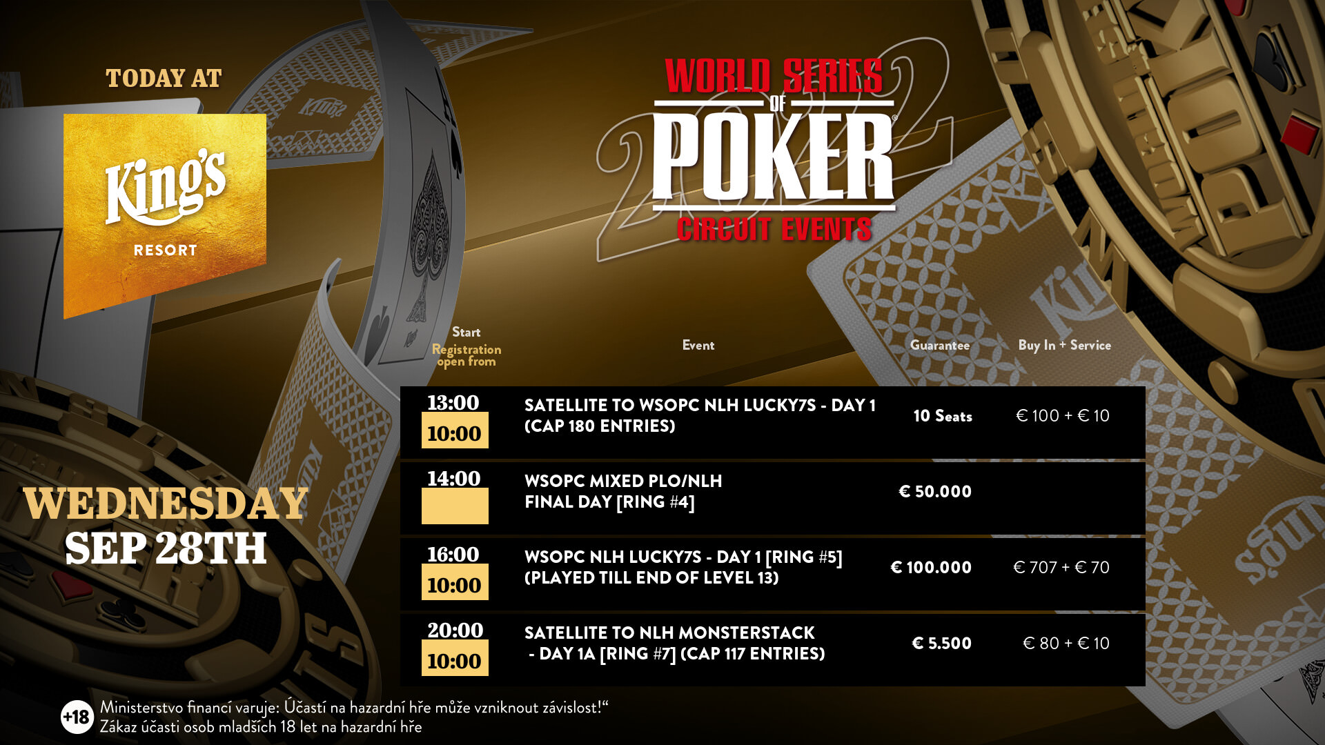 Am Montagabend wurde im Rahmen des World Series of Poker Circuit Festival im King’s Resort in Rozvadov mit dem €500+50 Mixed PLO/NLH der vierte Ring Event gestartet.