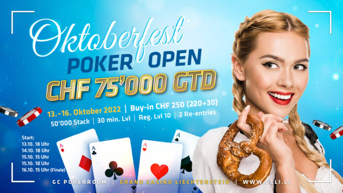 Im GC Pokerroom des Grand Casino Liechtenstein starteten am Mittwoch die Oktoberfest Poker Open mit dem CHF 30+5 Satellite für den CHF 250 Main Event, bei dem CHF 75.000 garantiert werden.