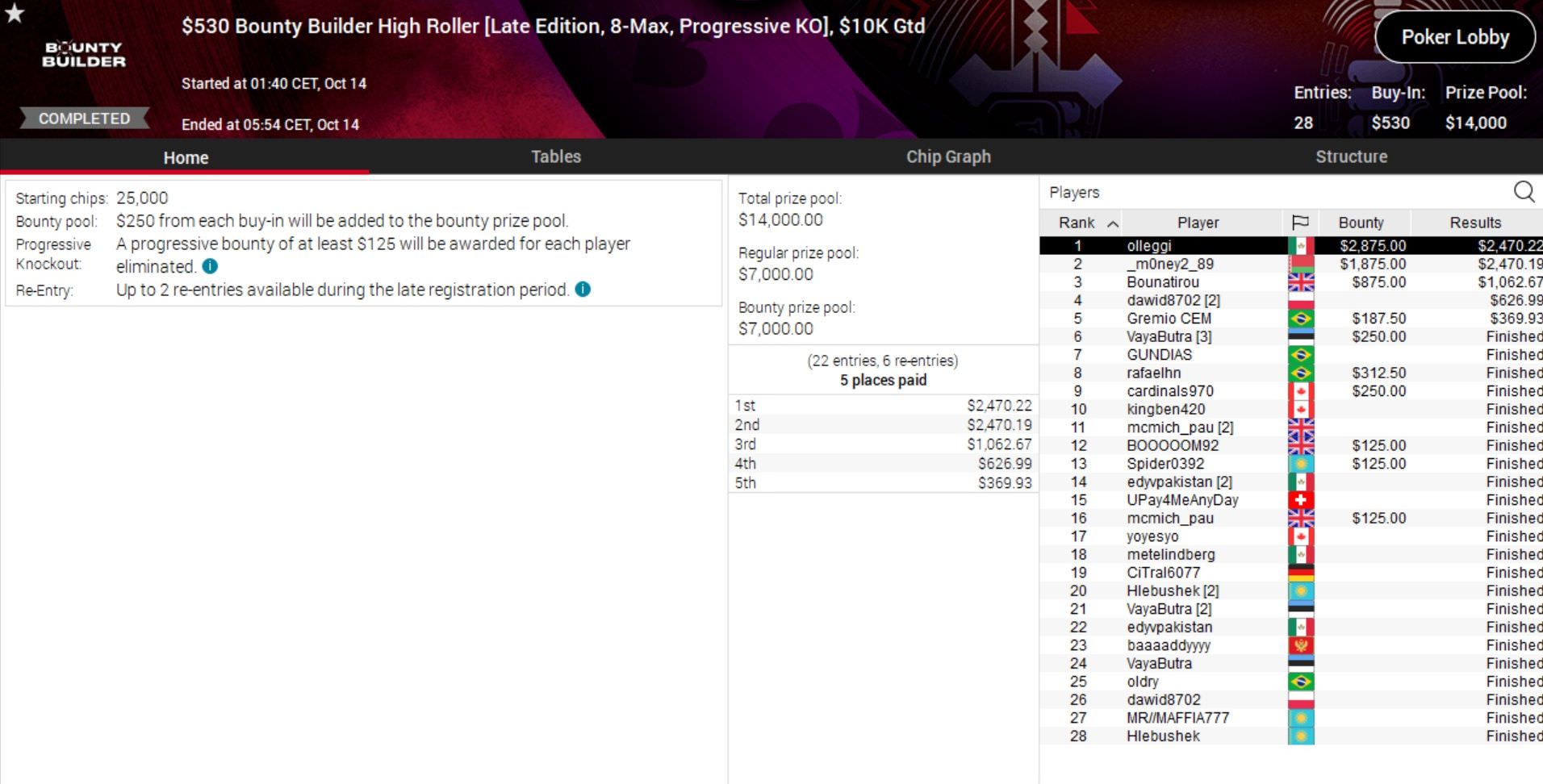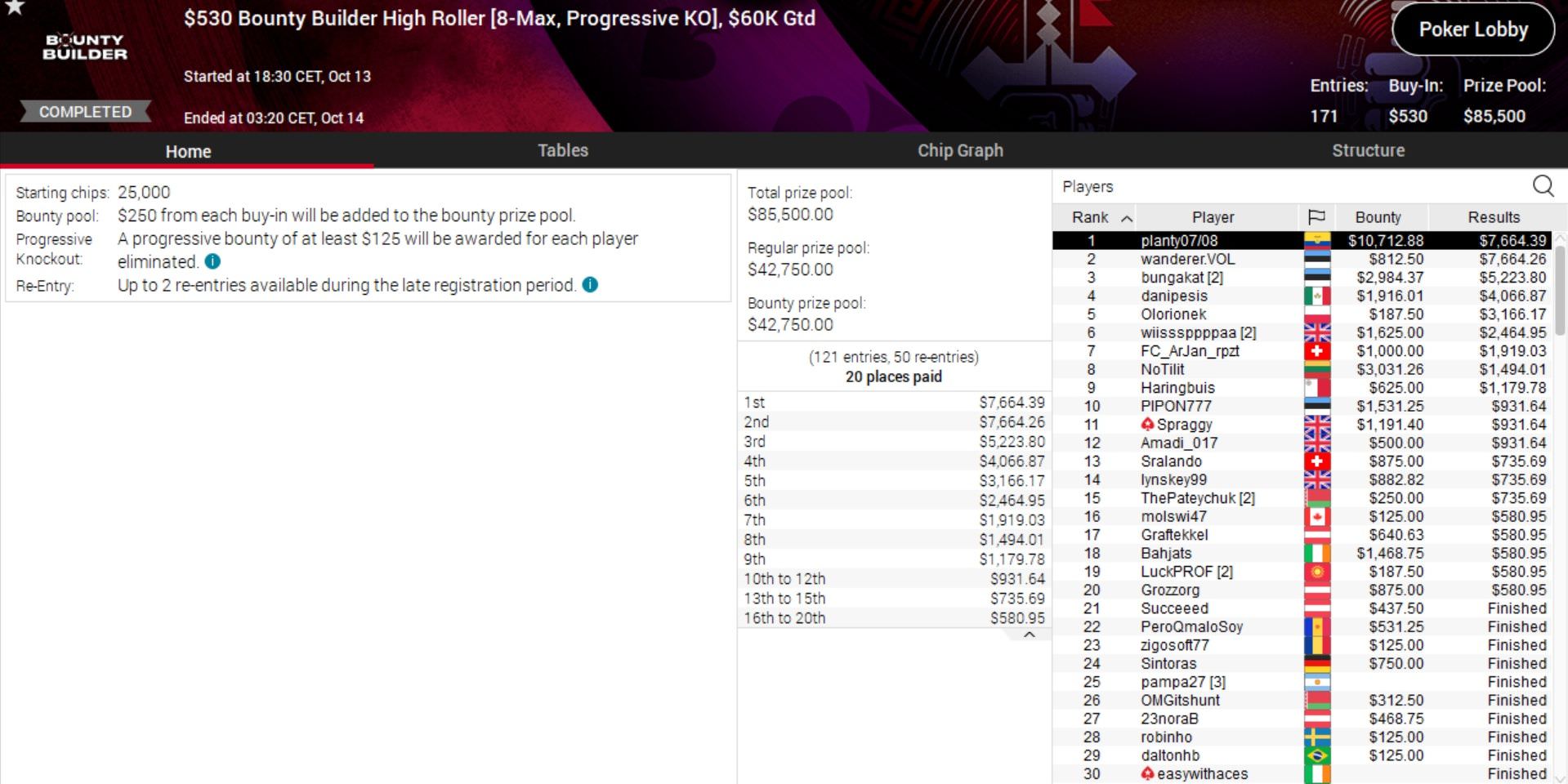 Eine Podiumsplatzierung erzielte auch Dominik „Bounatirou“ Nitsche mit dem dritten Platz bei der Late Edition des $530 Bounty Builder, der ihm rund $2.000 einbrachte.