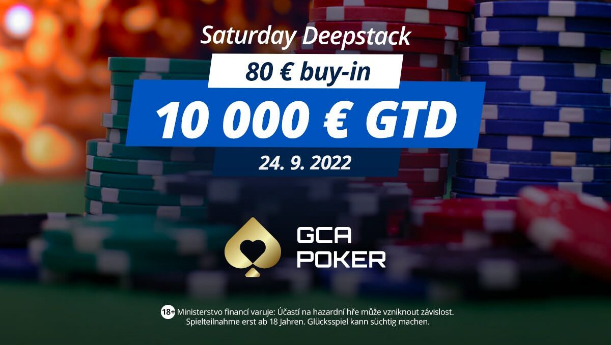 Am Abend wird dann ab 18:00 Uhr das €70+€10 Saturday Deepstack Turnier mit einer Garantiesumme von €10.000 gespielt. Die Startdotation beträgt 40.000 und die Blinds werden alle 20 Minuten erhöht. Zwei Re-Entries sind erlaubt und die Late-Registration ist bis 21:30 Uhr geöffnet.