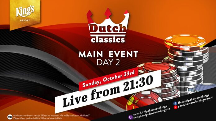 Am Sonntag gibt es ab 21:30 Uhr live aus dem King’s Resort Rozvadov, den Livestream vom Tag 2 des €220+€30 Dutch Classics Main Events powered by Pokerreis. Die Action wird 30 Minuten zeitversetzt mit Hole Cards übertragen und auf Deutsch von Stefan Hachmeister kommentiert.