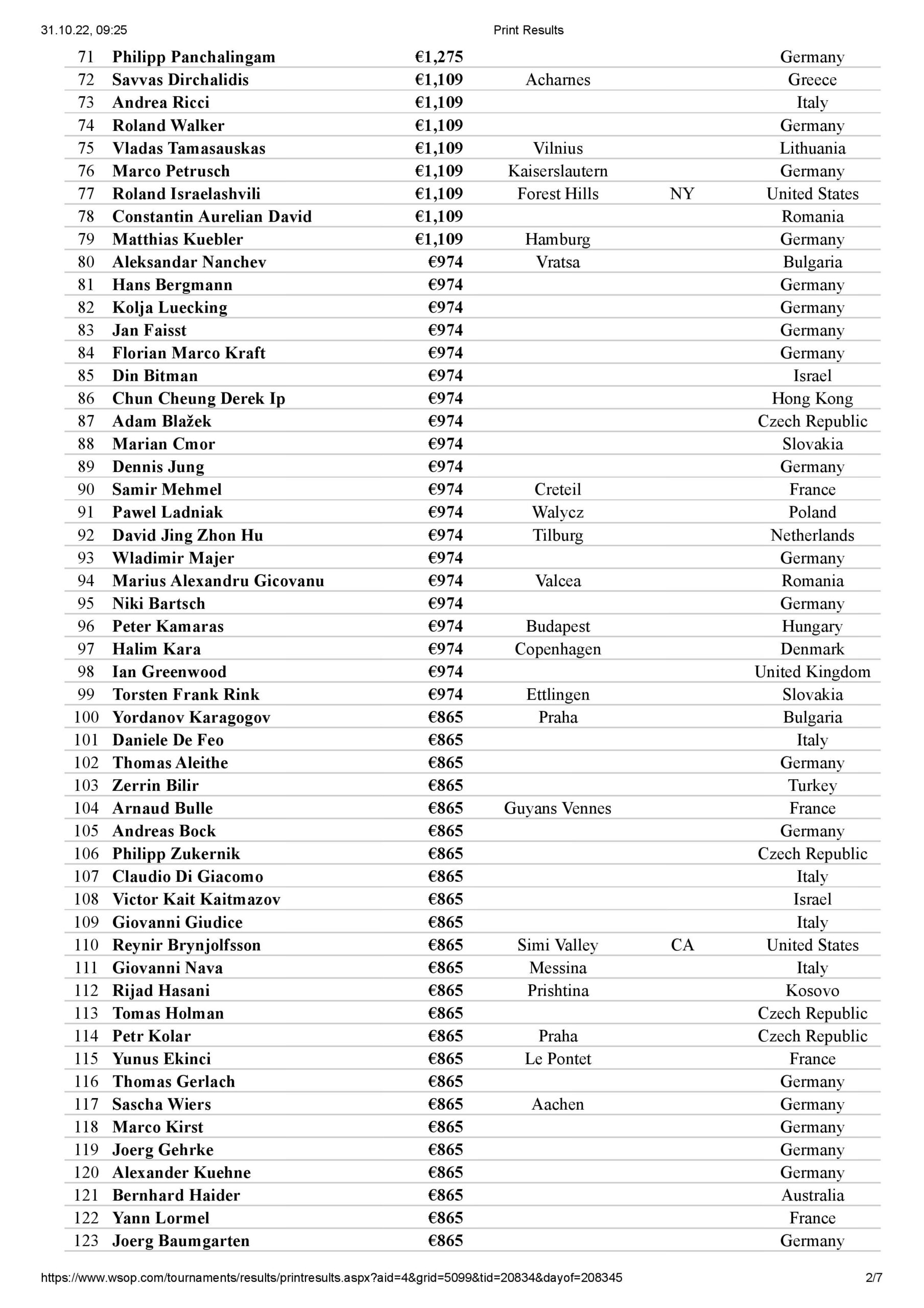 | Dennis | Wilke | Germany | 2745000 | 37 | 6 |
