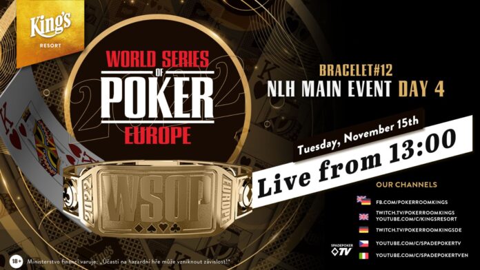 Am Dienstag gibt es ab 13:00 Uhr live aus dem King’s Resort Rozvadov, den Livestream vom Tag 4 des €10.000+€350 World Series Of Poker Europe (WSOPE) NLH Main Events (Bracelet Events #12). Die Action wird 30 Minuten zeitversetzt mit Hole Cards übertragen und auf Deutsch von Stefan Hachmeister und Kristijan „KIKINHO“ Batinic kommentiert.