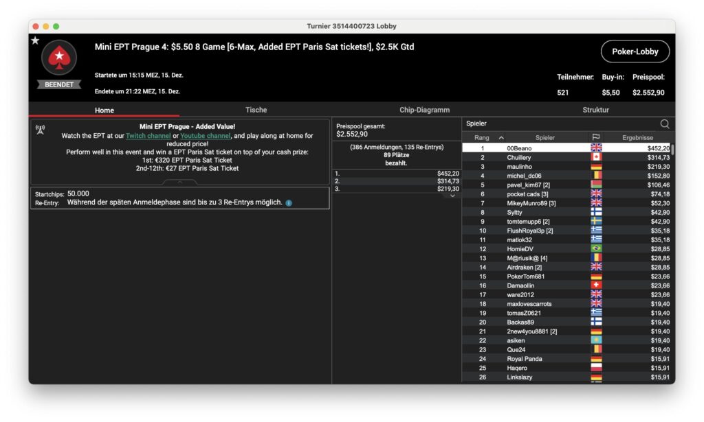 Am Donnerstag gab es auf PokerStars wie gewohnt eine Reihe von High Roller Turnieren, dazu gab es noch für Low-Stakes-Spieler die Mini EPT Prag.