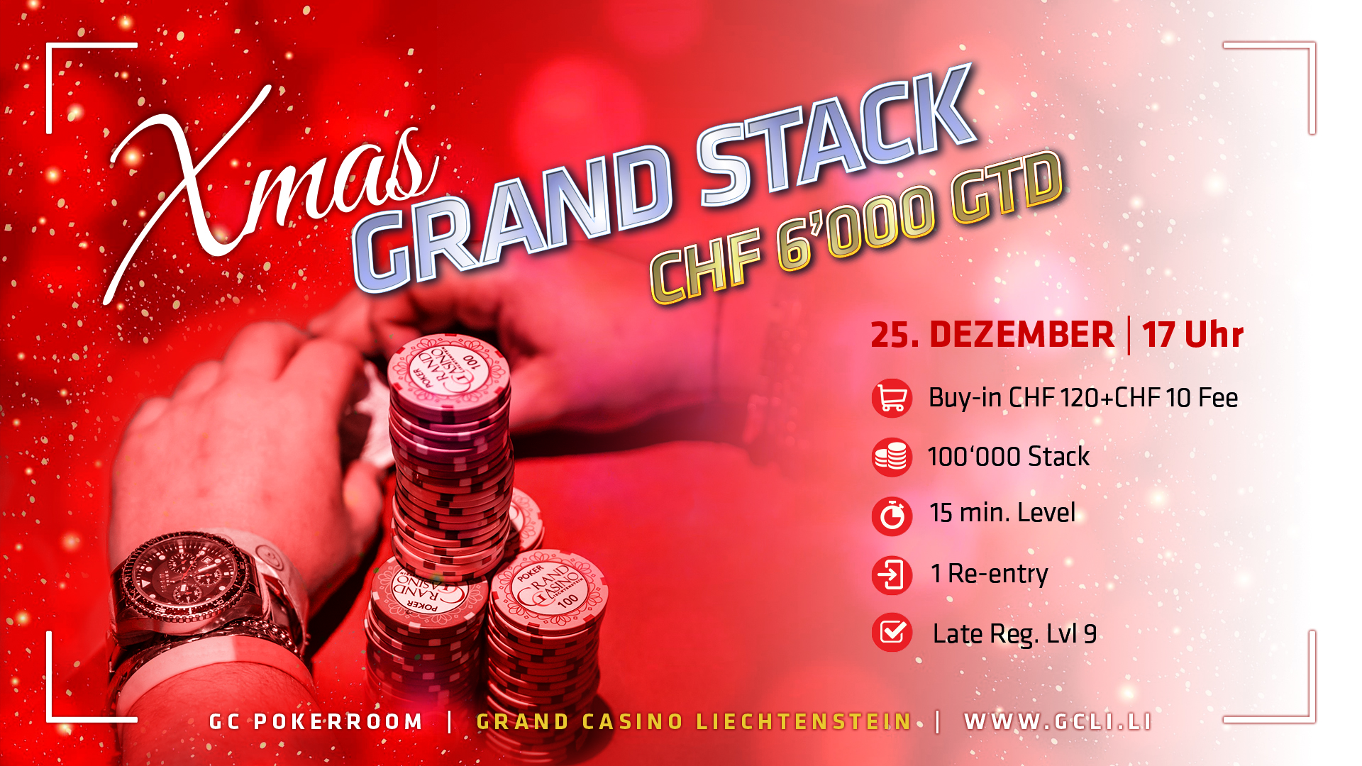 Im GC Pokerroom des Grand Casino Liechtenstein werden vom 25.- 30. Dezember 2022 bei sechs Events satte CHF 44.000 an Preisgeldern garantiert. Die Buy-Ins bewegen sich zwischen CHF 130 und CHF 220.