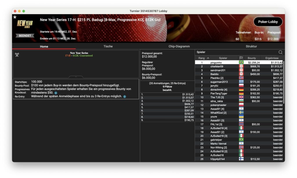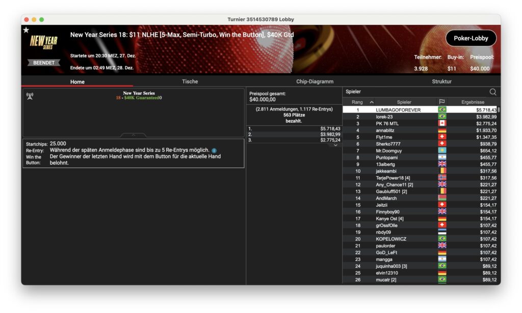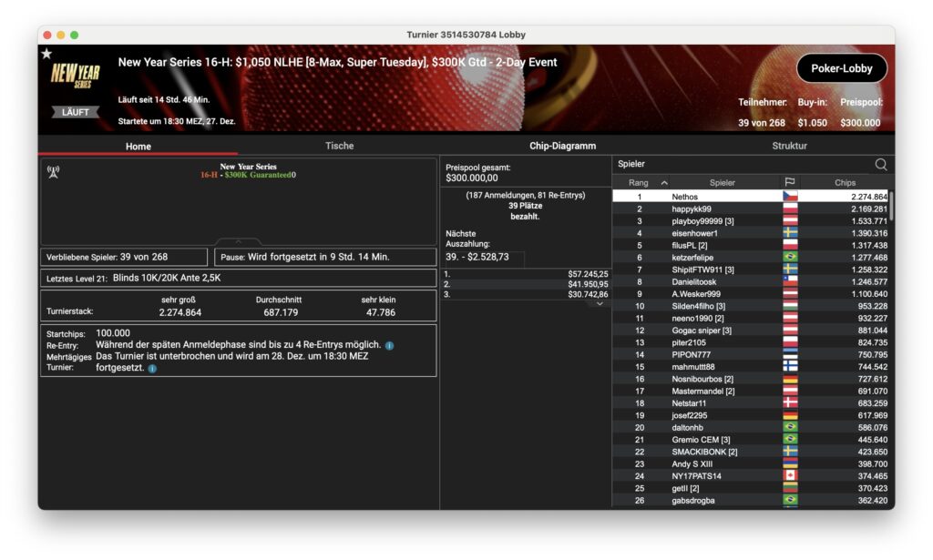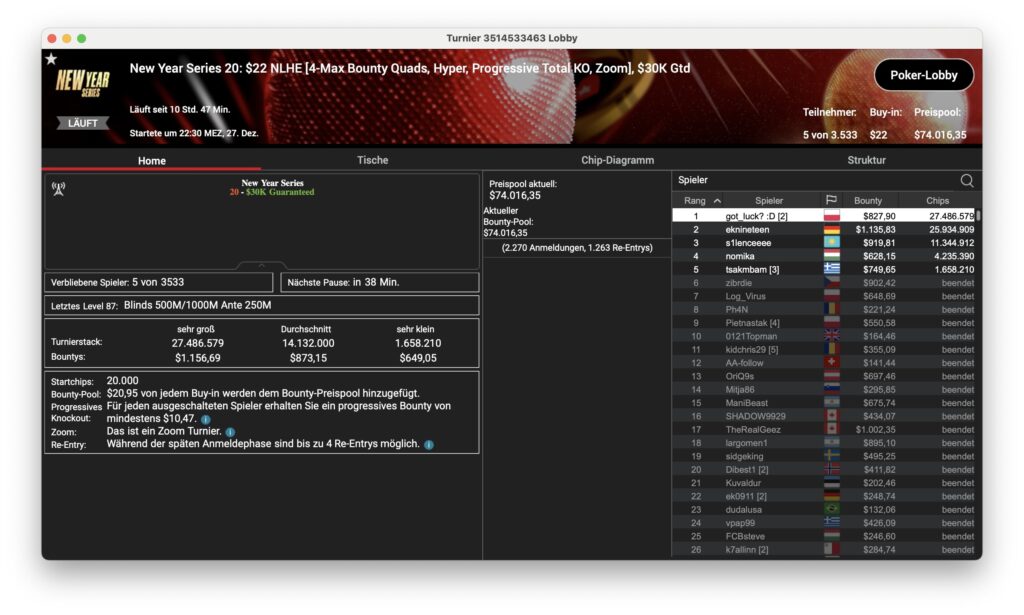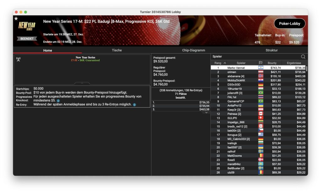 Auf PokerStars läuft die New Year Series auf Hochtouren und im High Roller Club gab es gestern vier Turniere an der Zahl – die Spieler aus Deutschland, Österreich und der Schweiz konnten nur eines gewinnen.