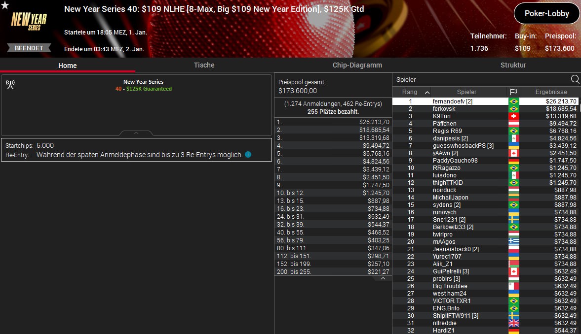 | 40: Big $109 New Year Edition | $173.600 | 4 | Päffchen (DE) | $9.494 |