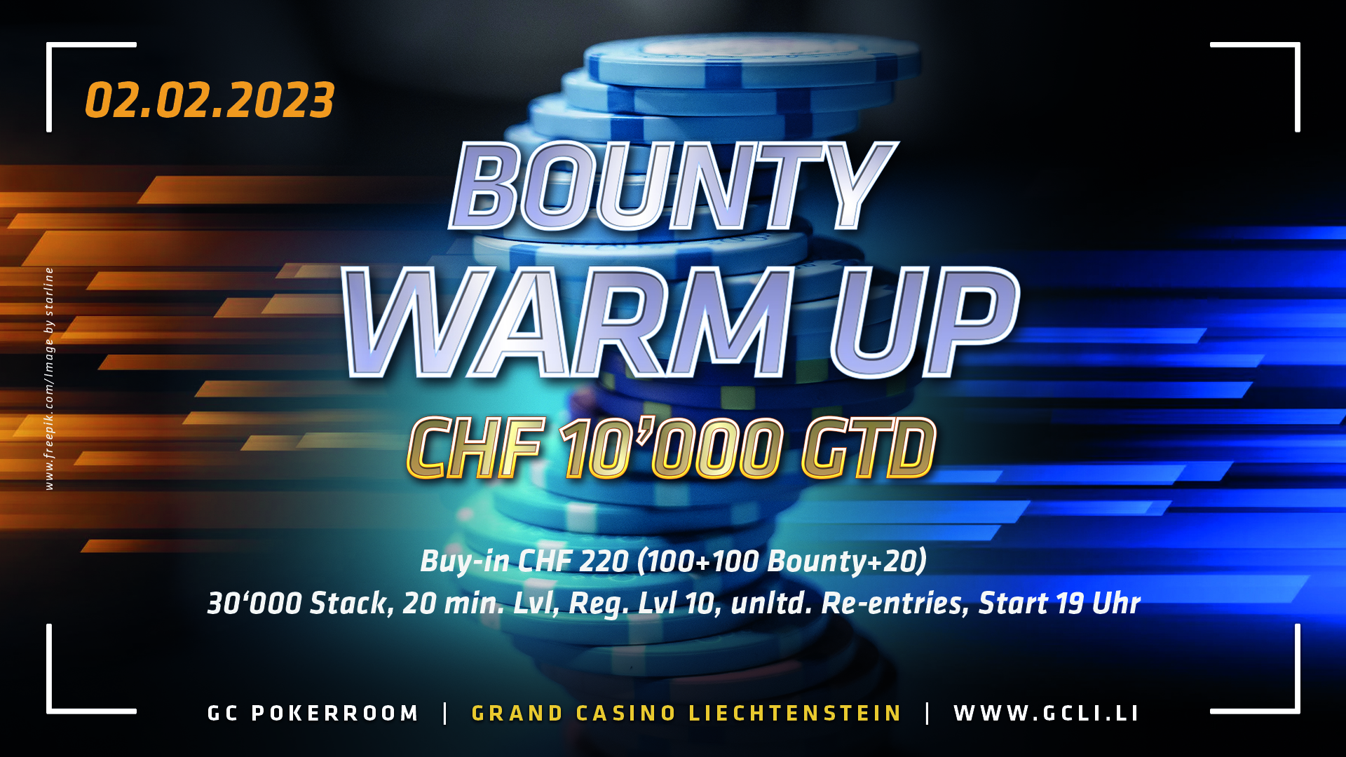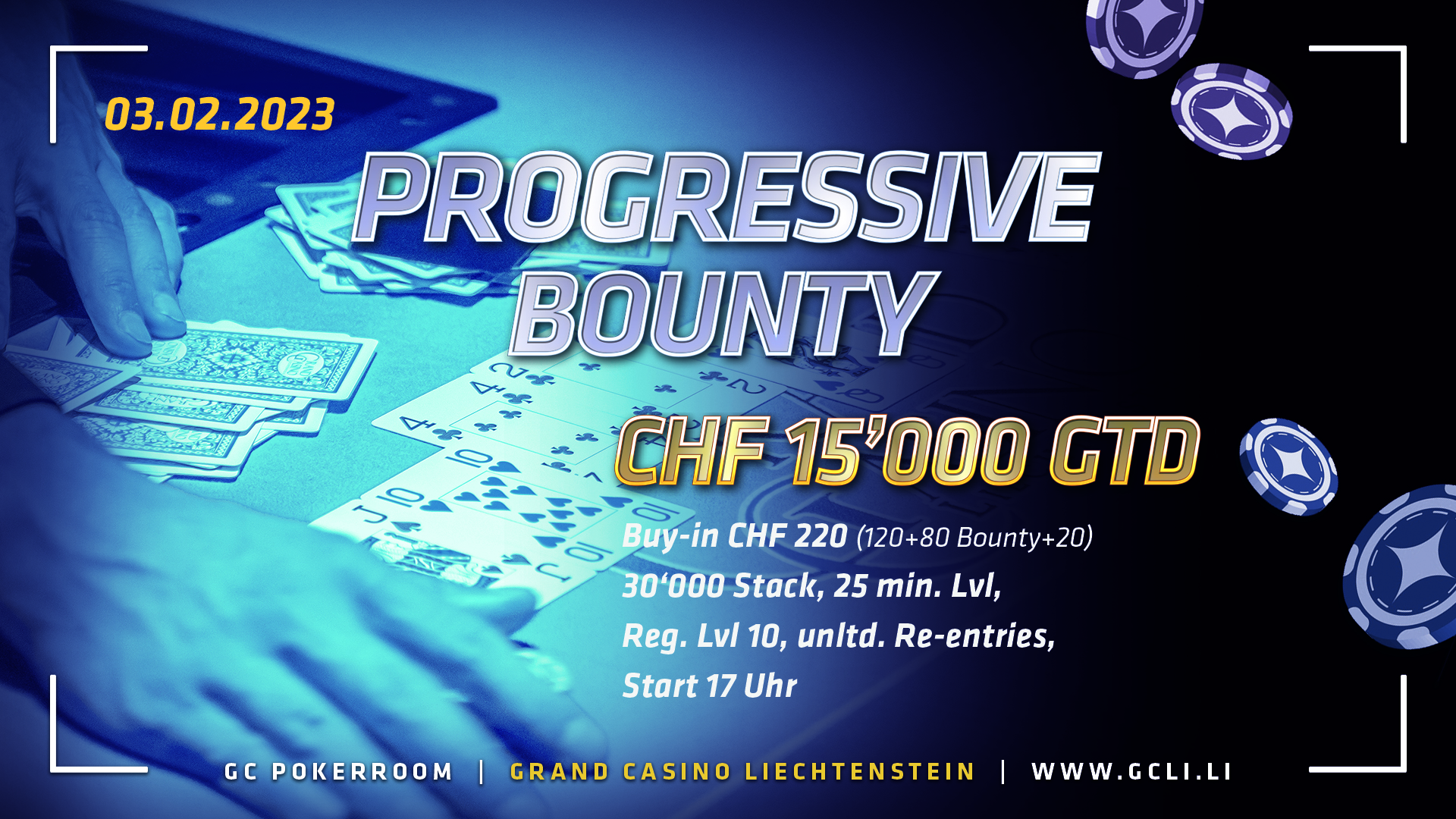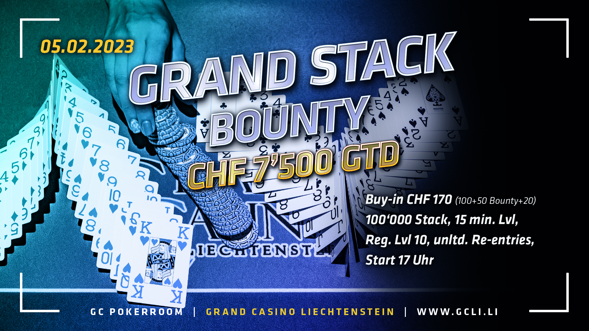 Direkt am ersten Wochenende, genauer gesagt am 4. und 5. Februar, präsentiert der GC Pokerroom das aktuell wohl angesagteste Live-Poker-Format. Gespielt wird das CHF 330 Mystery Bounty mit einem garantierten Preispool von CHF 50.000. Am Samstag stehen zwei Starttage auf dem Programm, am Sonntag dann das große Finale. Von den Buy-in fließen jeweils CHF 150 in den Preispool für die Mystery Bounties, die dann per Zufallsprinzip nach jedem Bustout ausgelost werden.