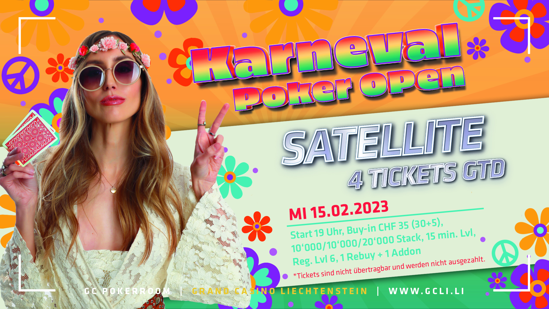 Um mindestens CHF 75.000 geht dann vom 16. bis 19. Februar beim Karneval Poker Open. Das Buy-In beträgt hier CHF 250 und es werden vier Starttage angeboten.