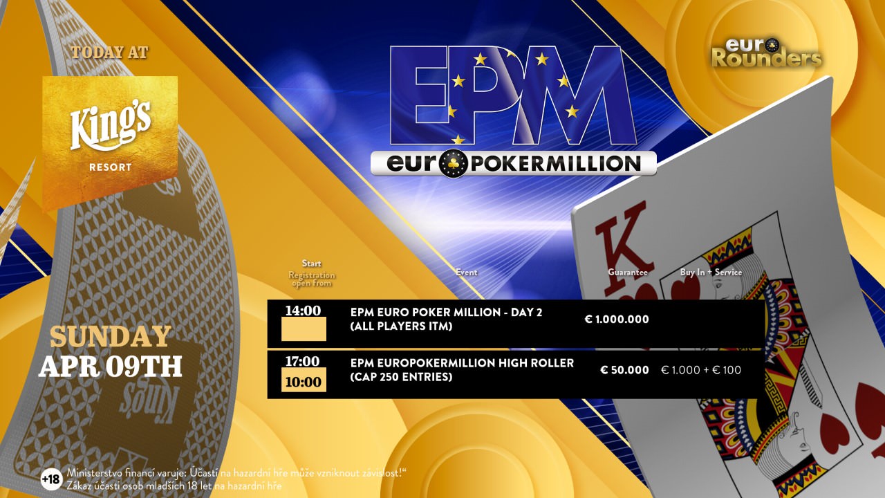Parallel zur Euro Poker Million (EPM) powered by EuroRounders.com wurde gestern im King’s Resort Rozvadov noch das King’s Saturday Night ausgetragen.