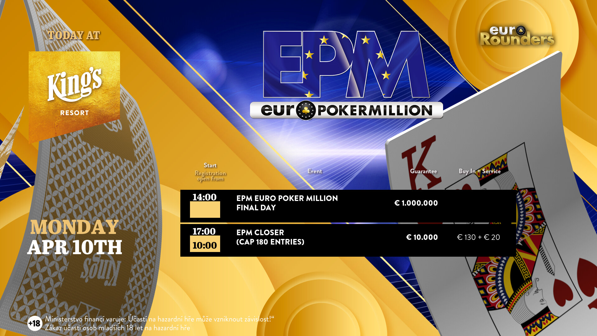 Das Main Event der Euro Poker Million (EPM) powered by EuroRounders.com wird heute zu Ende gespielt.