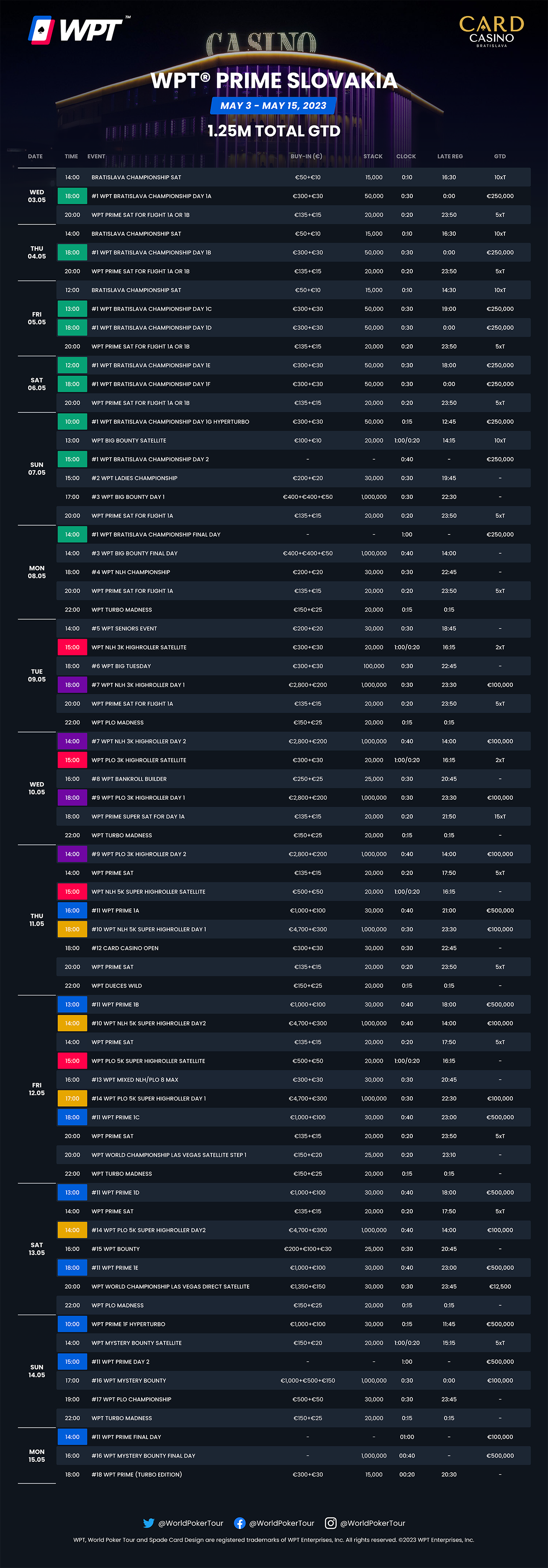 Der Wonnemonat steht dann zunächst ganz im Zeichen der WPT Prime Bratislava bzw. der WPT Prime Slovakia mit den beiden Main Events für €330 bzw. €1.100, doch das war es noch lange nicht.