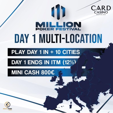 Diejenigen, die es können, richten für ihre Spieler Starttage zu einem großen Event in mehreren Locations ein. Das Card Casino Bratislava geht mit dem Million Poker Festival (MPF) jetzt noch einen Schritt weiter: „Play Day 1 in your Country“, heißt es in der Pressemitteilung zum MPF, das vom 5. bis 12. Juni mit einer Garantie von €1.000.000 in dies Slowakische Hauptstadt kommt! – Dabei fallen €500.000 der Garantie allein auf das Main Event aus, und für das kann man sich quasi überall in Europa qualifizieren.