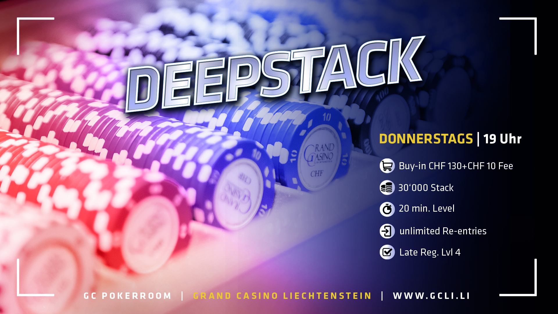 Im Grand Casino Liechtenstein (GCLI) stand gestern die nächste Austragung des klassischen Deepstack-Turniers am Donnerstag auf dem Programm.