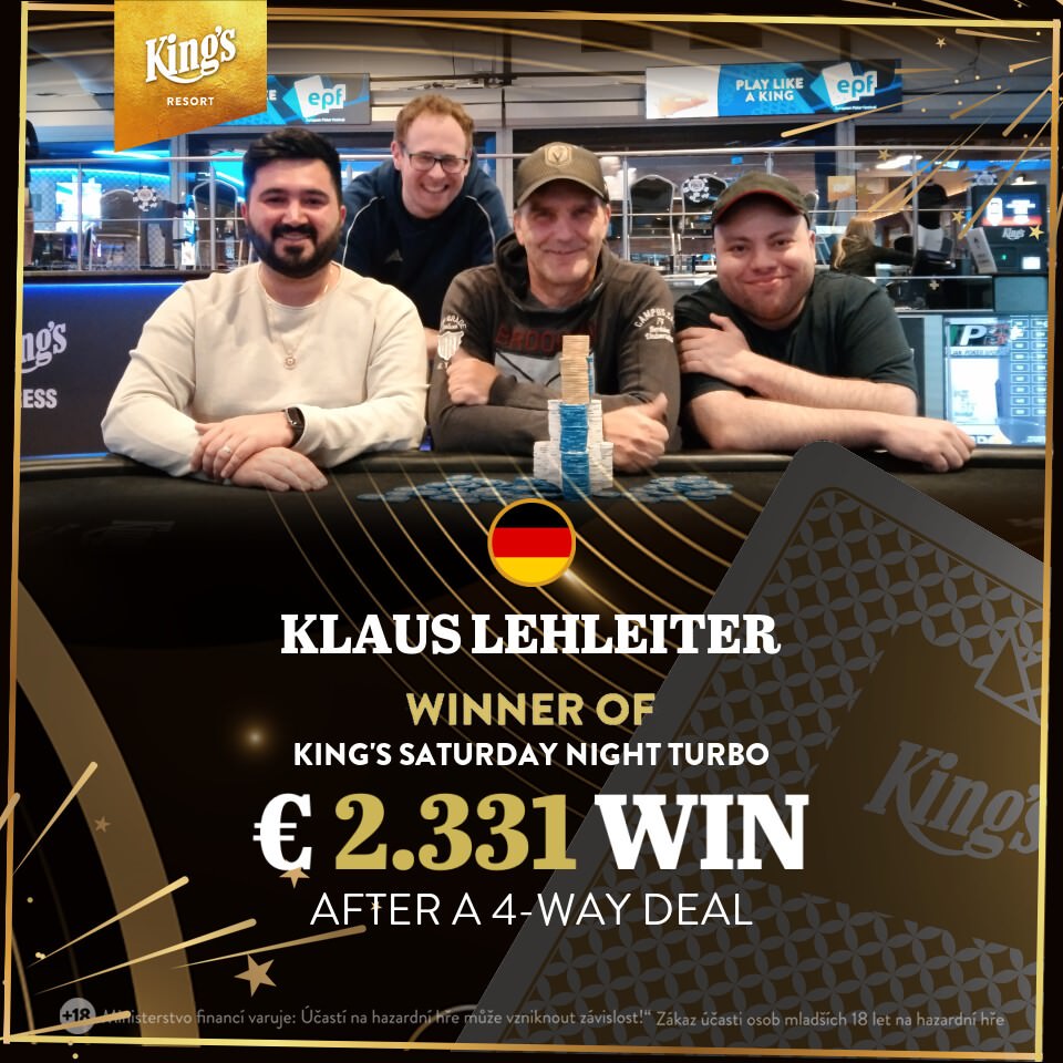 Klaus Lehleiter triumphiert nach 4-Way Deal beim King’s Saturday Night Turbo Tournament!