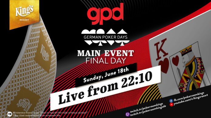 Am Sonntag gibt es ab 22:10 Uhr live aus dem King’s Resort Rozvadov, den Livestream vom Finaltag des €174+€25 German Poker Days (GPD) Main Events. Die Action wird 30 Minuten zeitversetzt mit Hole Cards übertragen und auf Deutsch von Stefan Hachmeister kommentiert.