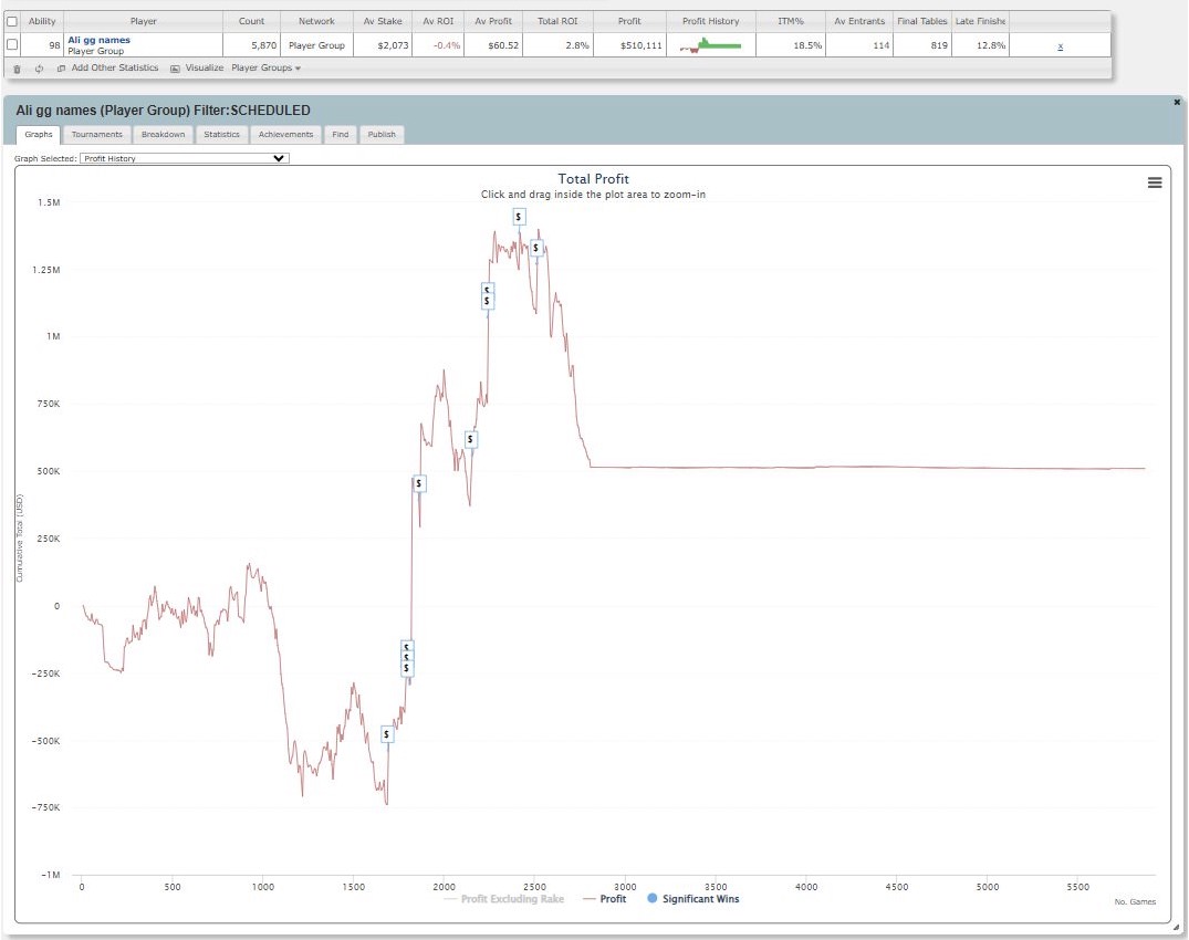 Wenn man sich die Graphen kombiniert anzeigen lässt, wird deutlich, dass sie zum Zeitpunkt der Stilllegung einen Profit von $510.111 erspielt hatten. Imsirovic hatte angegeben, dass GGPoker ohnehin bei der Sperrung seines Accounts $320.000 beschlagnahmt hätte. Ob er damit Geld von seinem eigenen Spieleraccount oder kombiniert von multiplen Accounts meinte, hatte er nicht gesagt. – Wie dem auch sei, es scheint so zu sein, dass der Schaden, der der High Roller Poker Szene entstanden ist, trotz des Geständnisses und der Beschlagnahme von $320.000 nicht beglichen ist. Und vielleicht ist das Ganze auch nur die Spitze des Eisbergs.