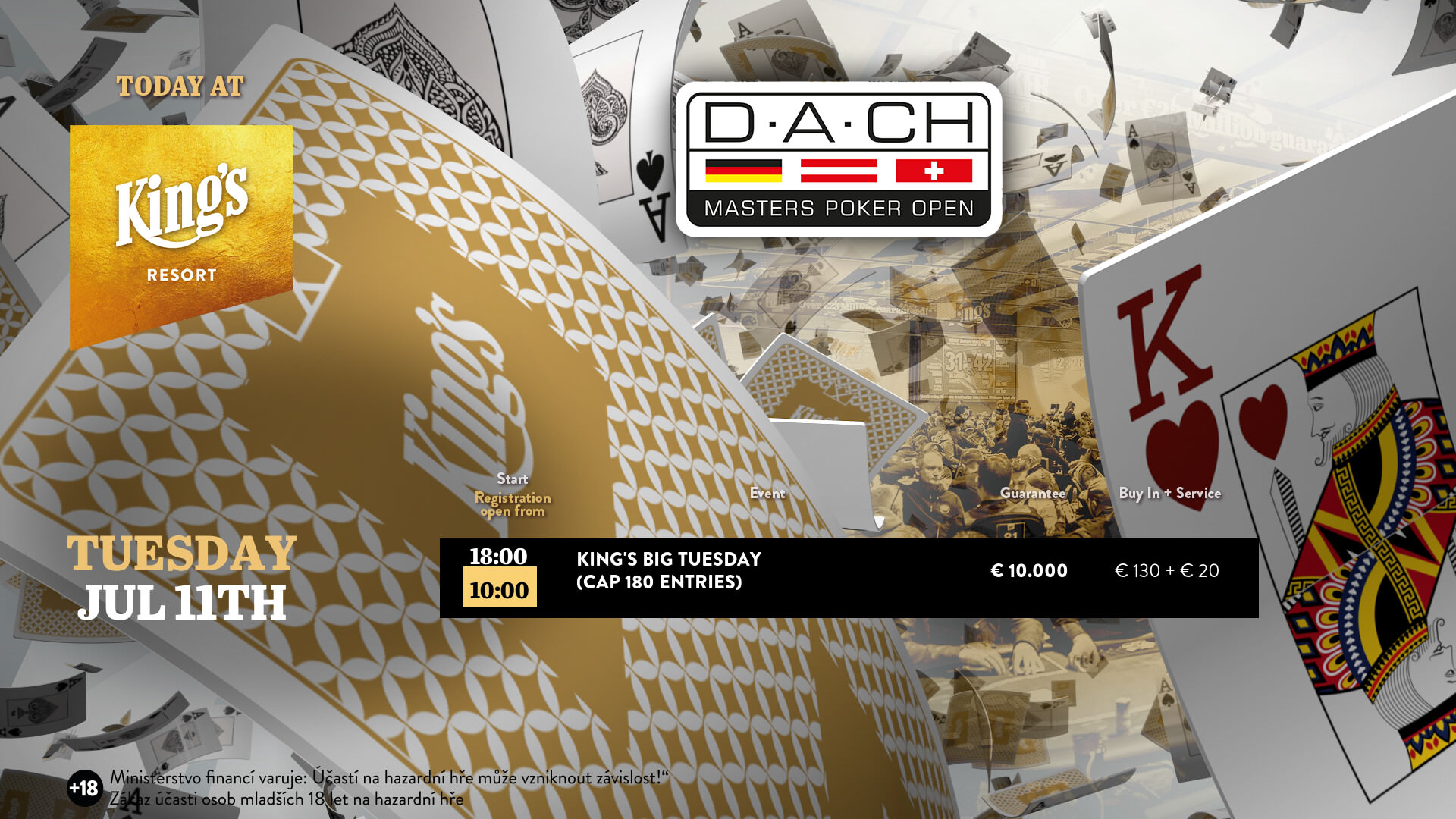 Auch im King’s Prag steht ein Turnier auf dem Programm. Um 18:00 Uhr wird hier das Microbuyins Special €50+10 PLO Tuesday gespielt – €5.000 werden hier garantiert.