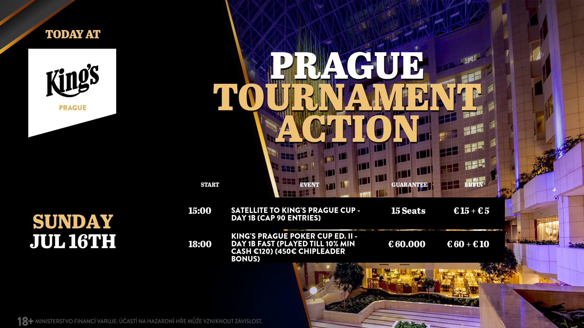 Im King’s Casino Prague steht Tag 1B des €60+€10 King’s Prague Cup auf dem Turnierplan. Los geht es um 18 Uhr, davor findet um 15 Uhr ein €15+5 Satellite statt, bei dem 15 Plätze garantiert werden.