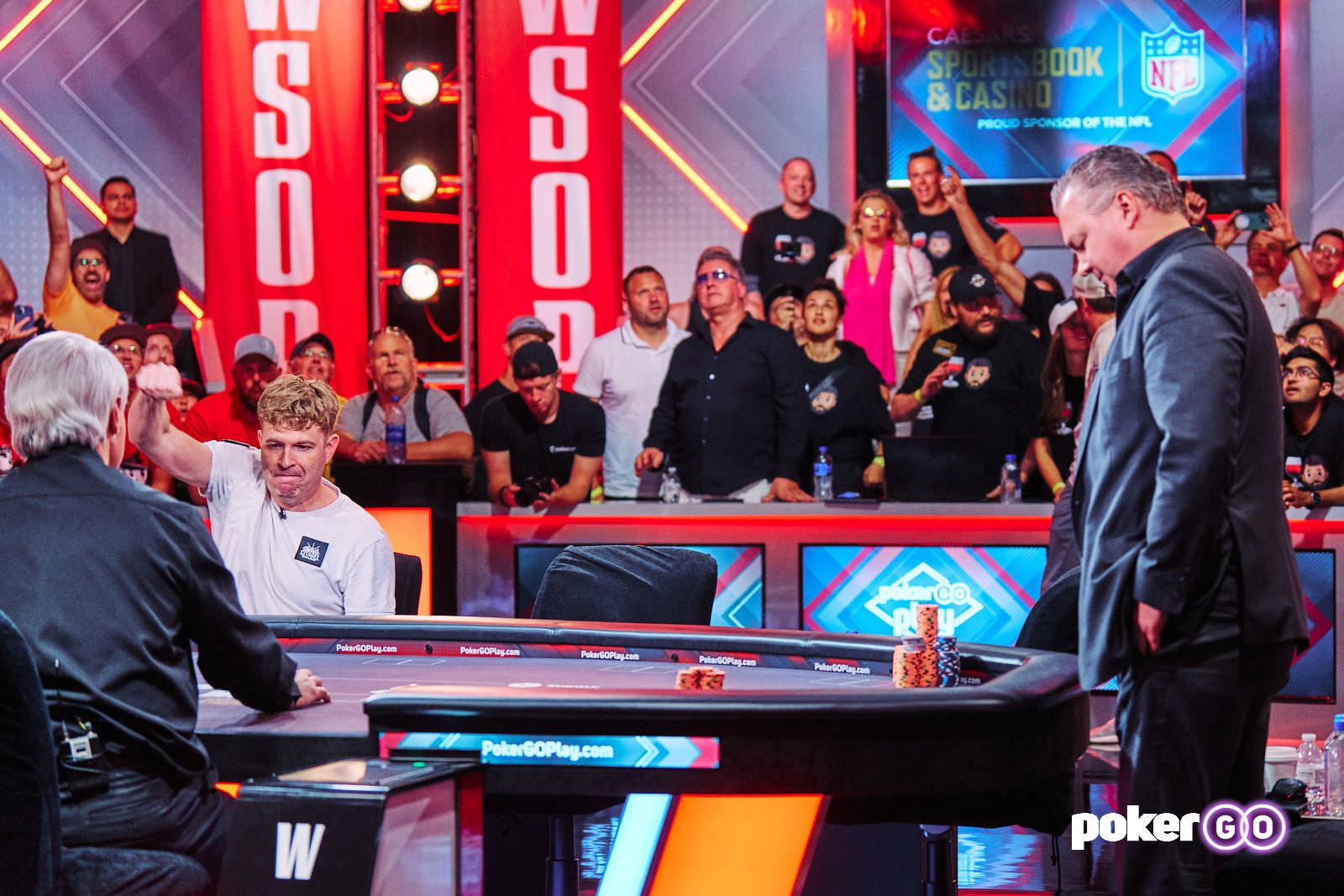 Nur wenige Hände später erwischte es auch den lange Zeit dominierenden Spanier Juan Maceiras. Er trat mit K9 gegen Toby Lewis‘ AJ an und war schon nach dem Flop mit AJ2 auf ein Wunder angewiesen.