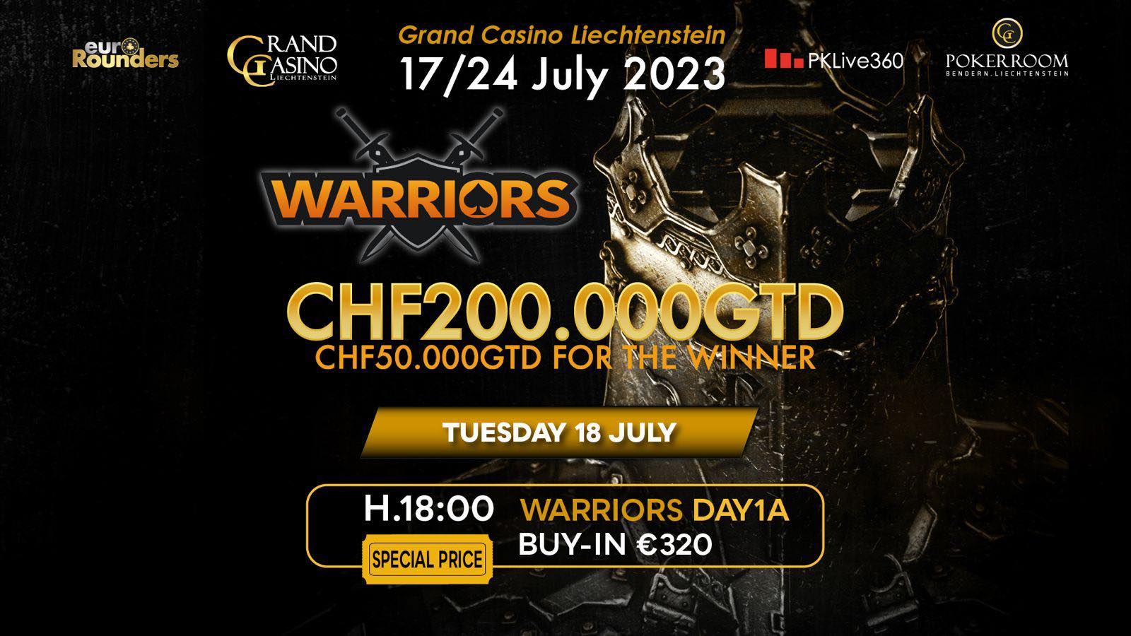 Eine ganze Woche steht das Grand Casino Liechtenstein ganz im Zeichen des Warriors-Festival powered by EuroRounders.com, wo es allein beim Main Event CHF 200.000 zu gewinnen gibt.