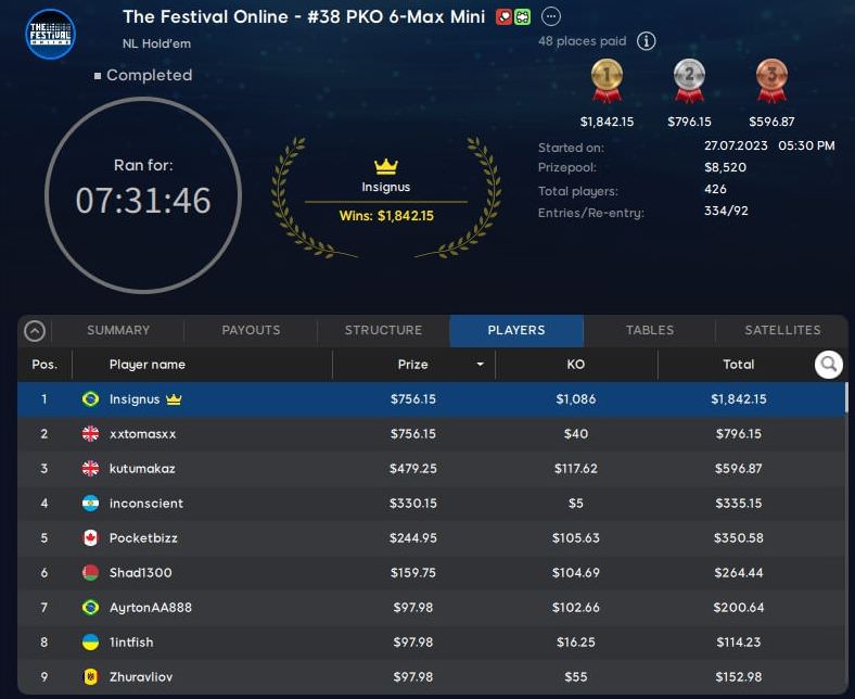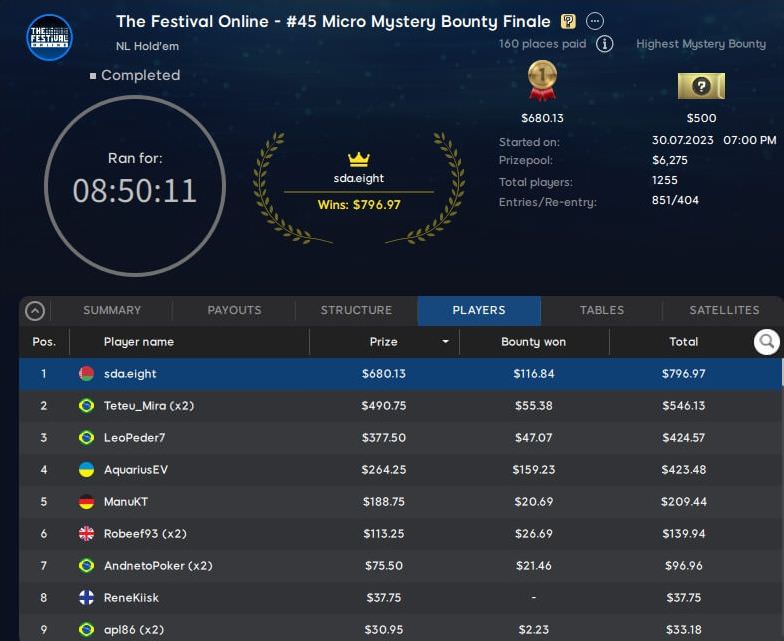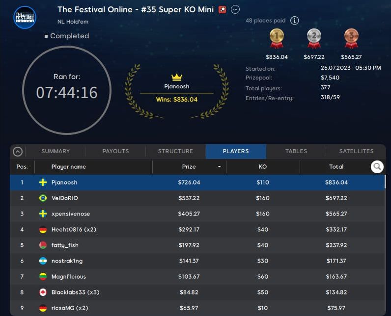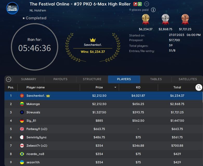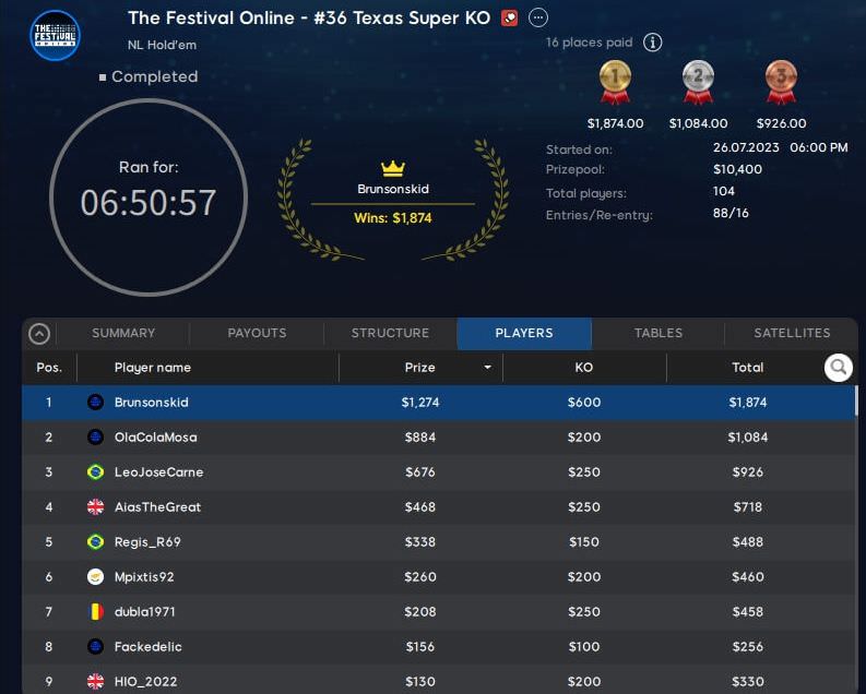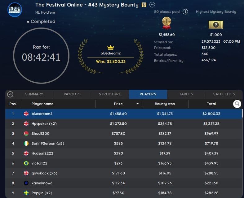 Am Wochenende wurde auf 888poker die Schlussphase der Festival Online Series eingeläutet.