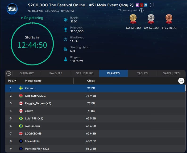 108 Spieler haben ihren Platz im heutigen Tag 2 sicher, in Führung liegt der Schwede „Kzzzon“.