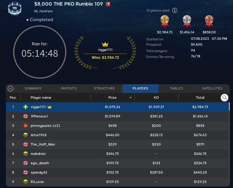 Der Sieg und rund $8.700 gingen nach Brasilien, aber schon auf Platz 2 landete mit „roberthuth4“ ein deutschsprachiger Spieler. Als Belohnung kassierte er knapp $6.500.