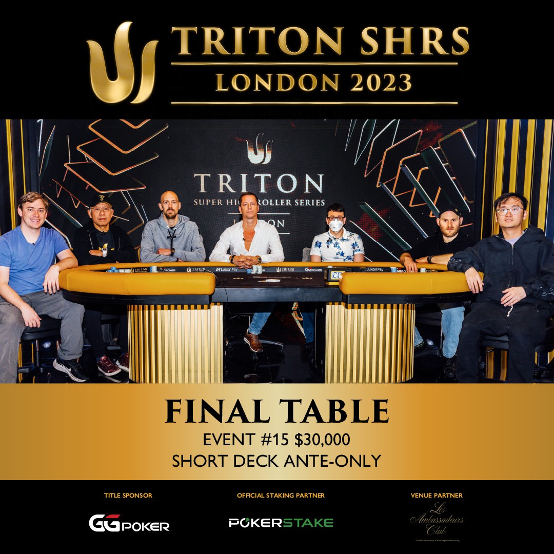 Wie bei Triton Series Tourstopps üblich, werden die Short Deck Events am Ende des Super High Roller Series Festivals gespielt, so auch bei der Triton SHRS London (powered by GGPoker und LuxonPay). Am Donnerstag wurde sowohl das $60k Short Deck Main Event (Event #16) gestartet, als auch das $30k Short Deck (Event #15) entschieden. In Event #15 konnte Wai Kin Yong seine Führung nach Tag 1 auch am Finaltag behaupten und gewann unter 37 Entries $350.000 Siegprämie aus dem $1.110.000 Preispool vor dem US-Amerikaner Chris Brewer. – Im SD Main Event gab es von den 26 Teilnehmer*innen viele Re-Entries, so dass letztendlich nur 4 Spieler*innen vorzeitig ausgeschieden sind, und heute noch 22 in Tag 2 von 3 starten. Die Late Registration ist allerdings auch heute noch 1 Level geöffnet. Derzeit führt Danny Tang im Chipcount vor Jason Koon und Phil Ivey.