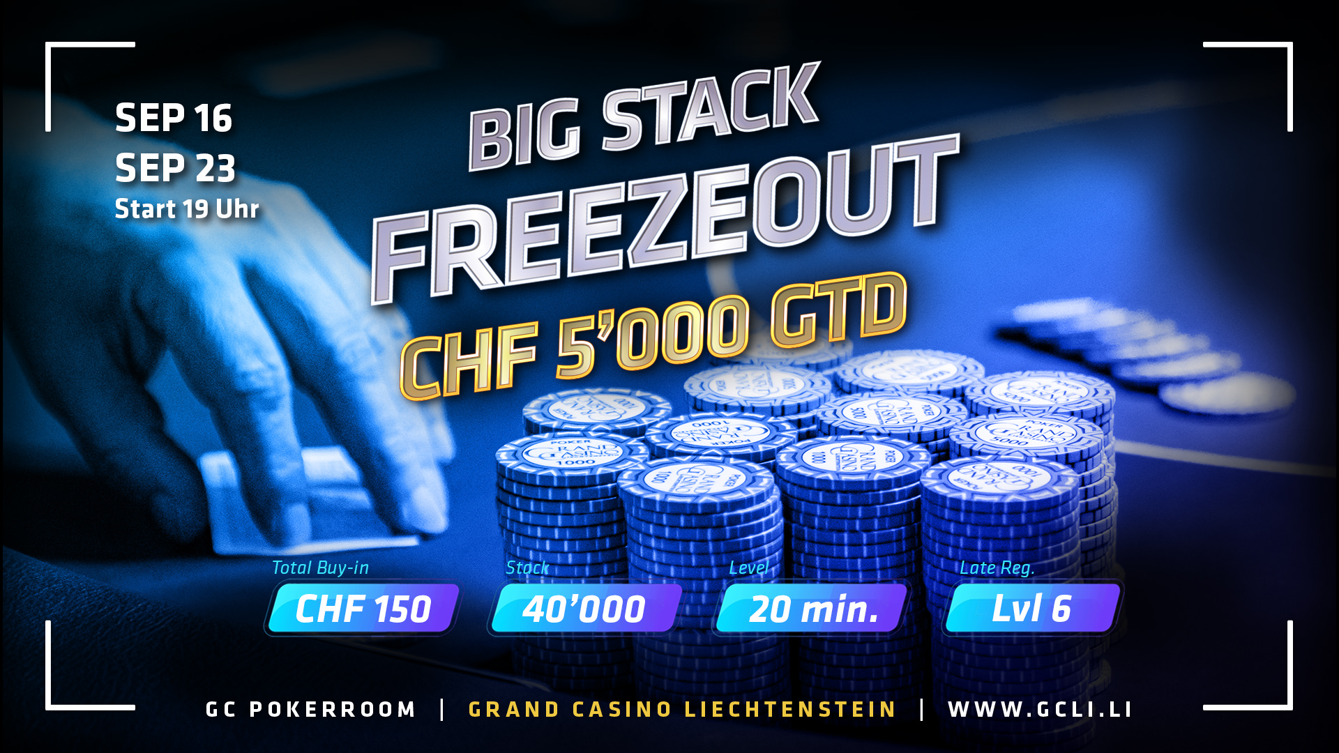 Auch in dieser Woche ist Grand Casino Liechtenstein wieder jede Menge Pokerspaß angesagt. Jeden Tag steht ein Turnier auf dem Programm und Cash Games werden sowieso jeden Tag ab 17:00 Uhr gezockt!