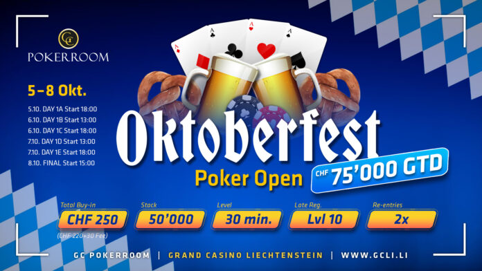 Ab Donnerstag wird das Oktoberfest Poker Open ausgetragen, bei dem es mindestens CHF 75.000 an Preisgeldern zu gewinnen gibt.