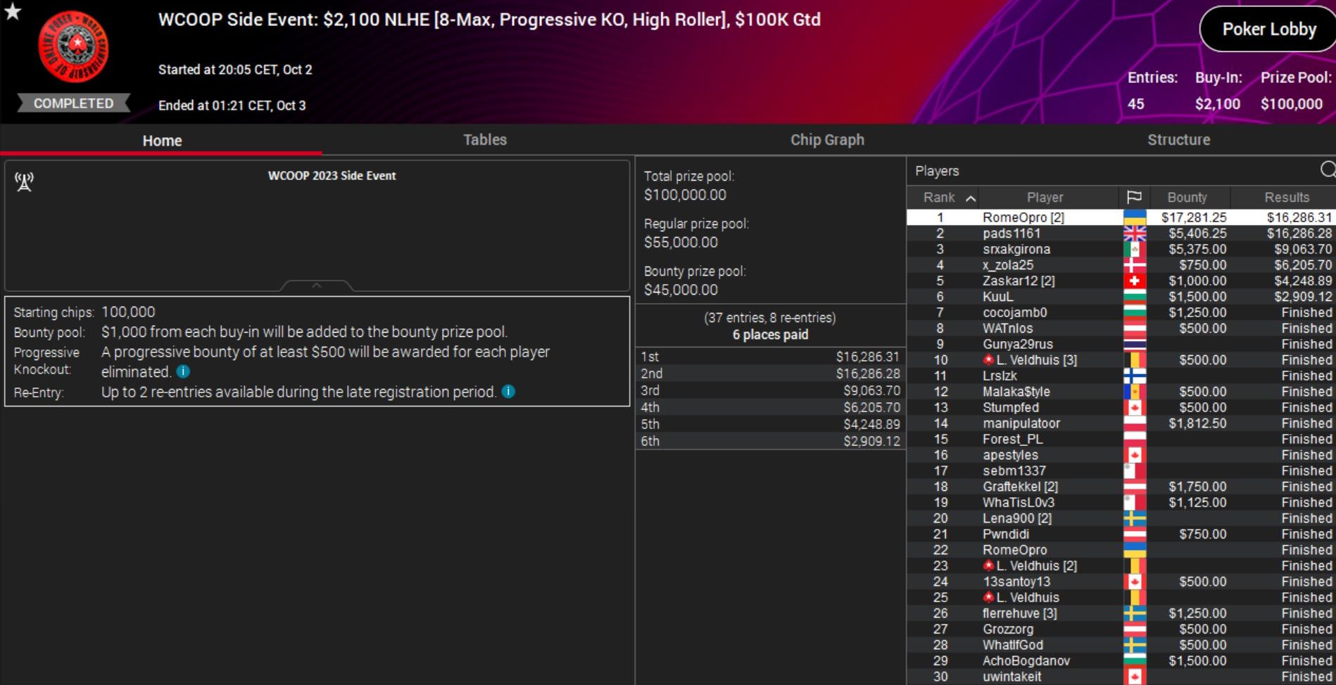 | 03. Okt | Tue | 15:05 | WCOOP 107-H: $530 NLHE [Heads-Up,][Turbo,][Progressive][Total][KO,][Zoom], $175K Gtd |