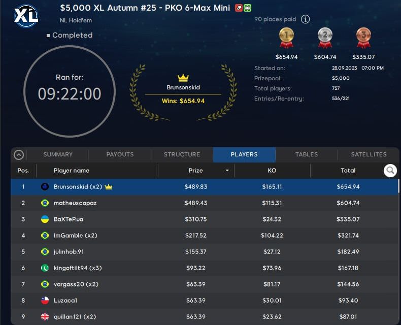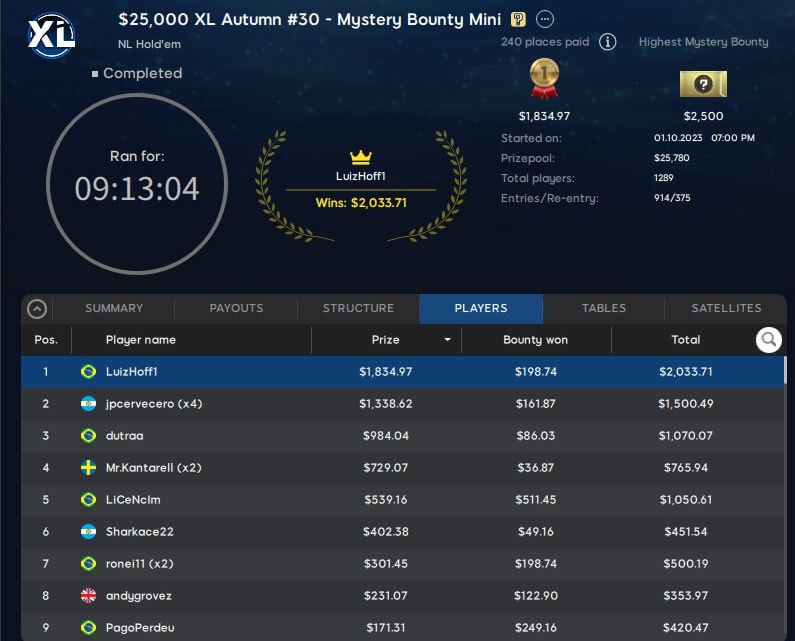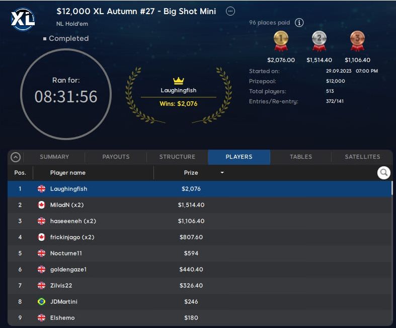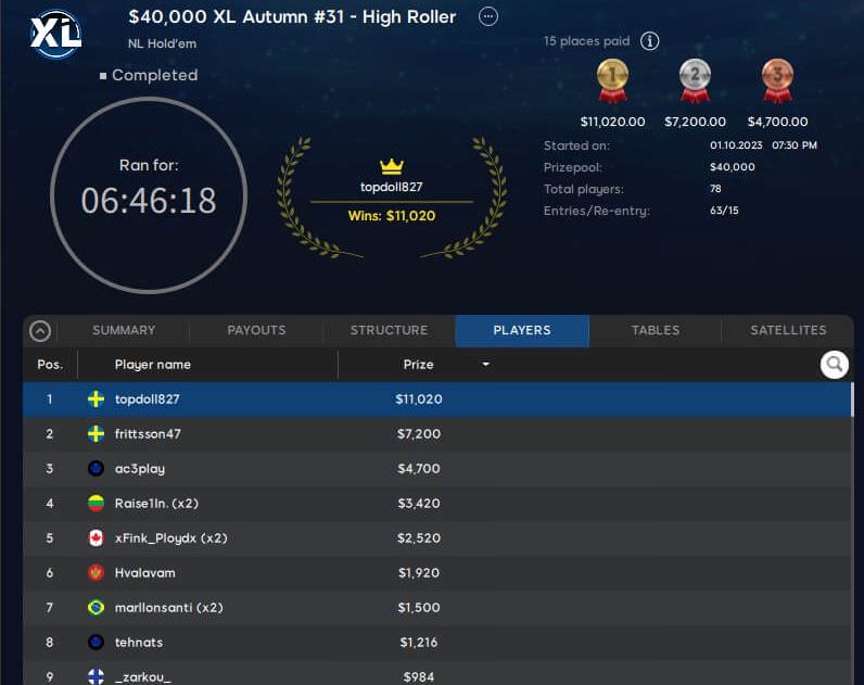Mit 2.002 Entrys wurde die Garantie von $500.000 gerade so erreicht, wenn man die Teilnahmegebühren mit einrechnet.